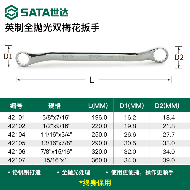 Sata/世达英制双梅花扳手7/16双头眼睛呆板子五金修车用汽修工具