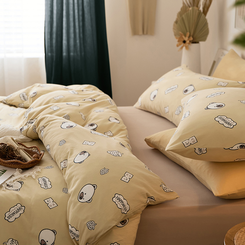 ins风卡通天竺棉四件套全棉100纯棉针织裸睡儿童床品春秋被套床单