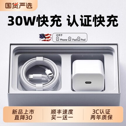 【国家3C认证】【30W快充】适用苹果16充电器头iphone15手机14promax插头13数据线12/11ipad闪充原配盒装套A