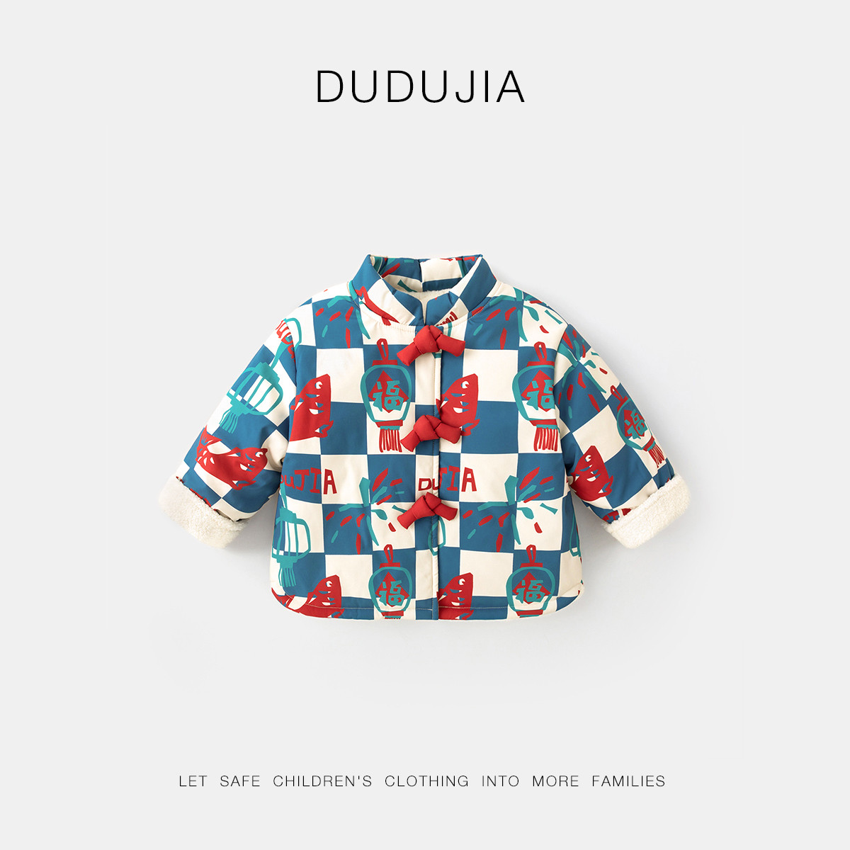 嘟嘟家童装儿童棉服红色新年款外套冬季男童上衣拜年服女宝宝年装