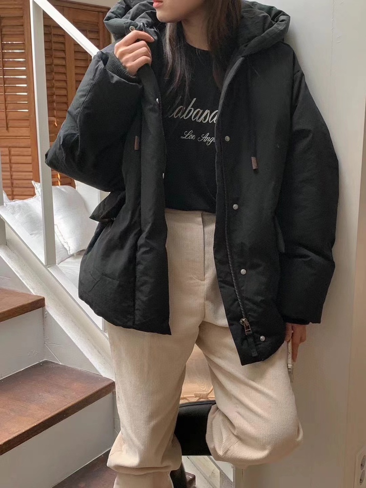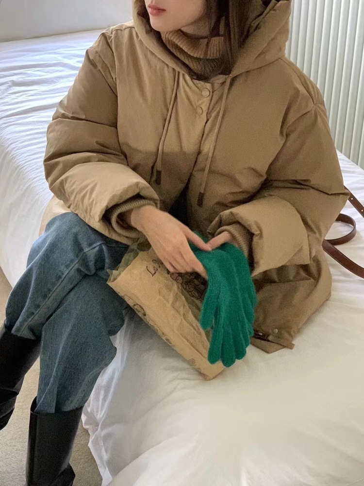 现 韩国东大门代购2025秋冬venir-a纯色连帽宽松中长款 羽绒服 厚