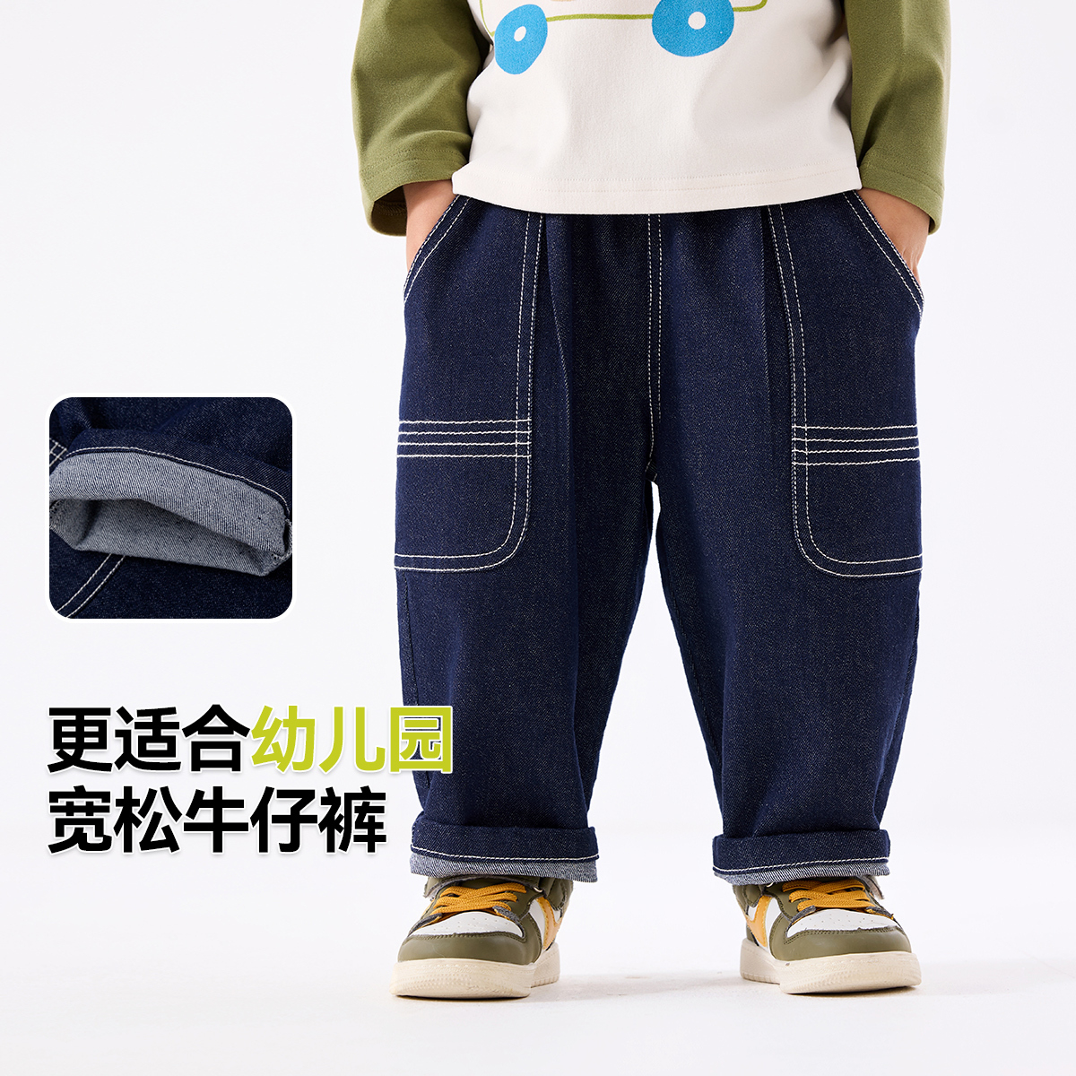 嘟嘟家宝宝秋季牛仔裤女童山系长裤男童休闲裤大口袋宽松韩版裤子