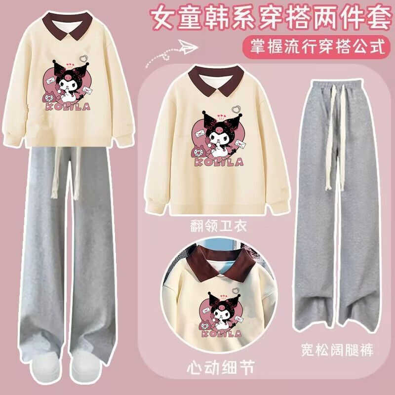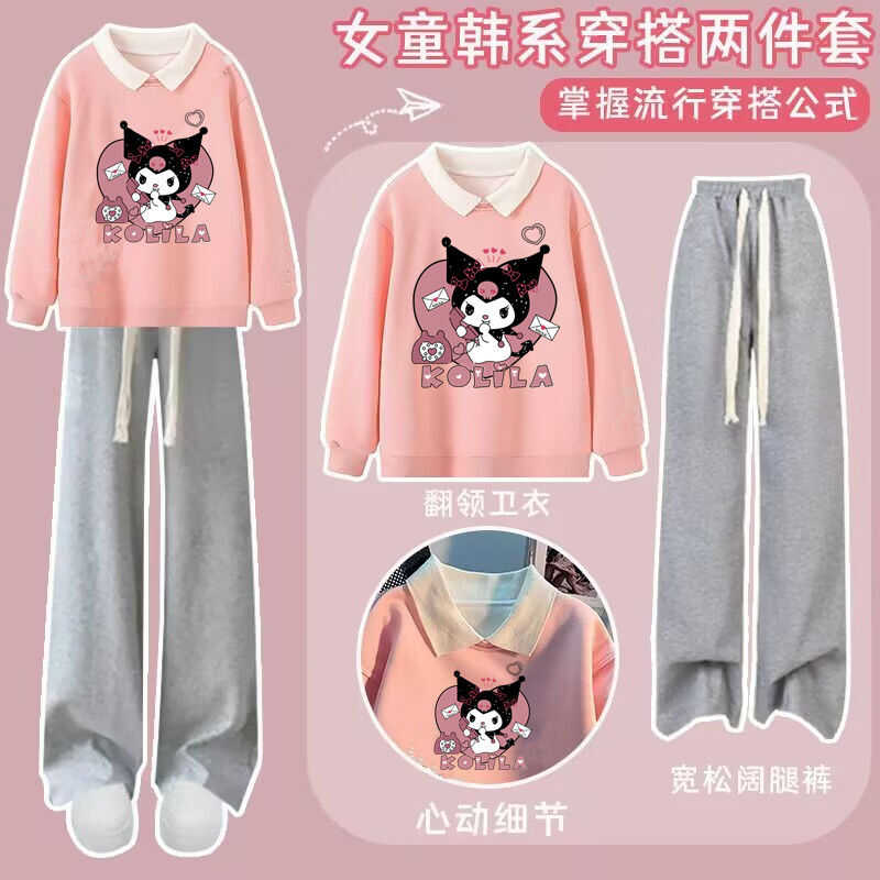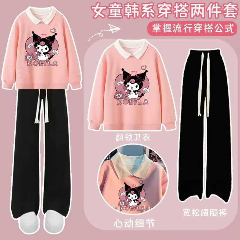 女童秋冬套装2024新款中大童女孩洋气卫衣韩范阔腿裤时髦潮两件套