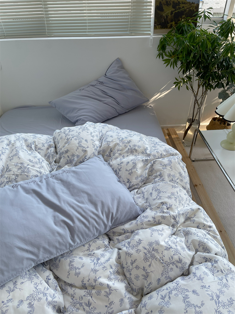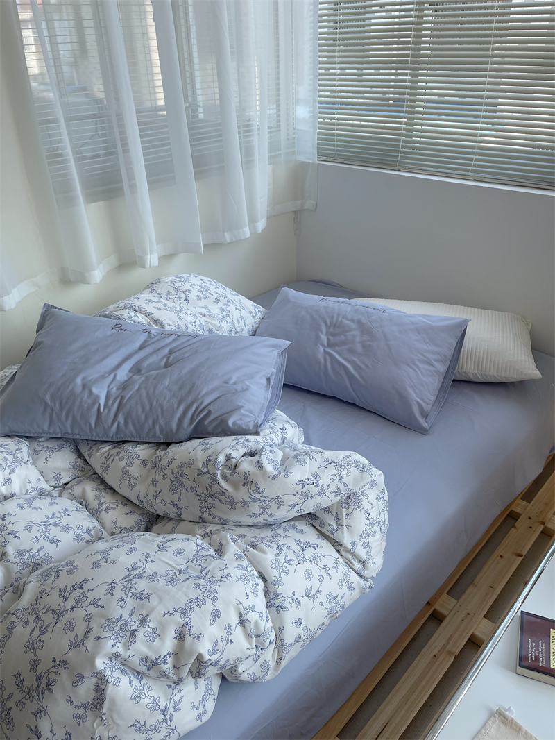 梨梦 花开半夏蓝 ins纯棉双层纱全棉四件套纯棉床单被套床上用品