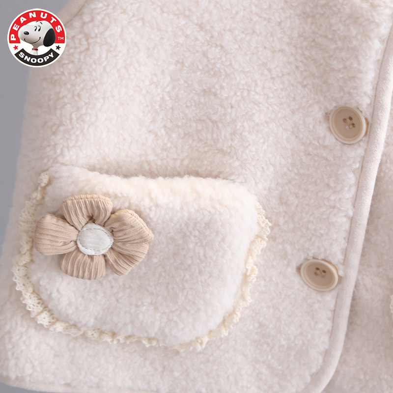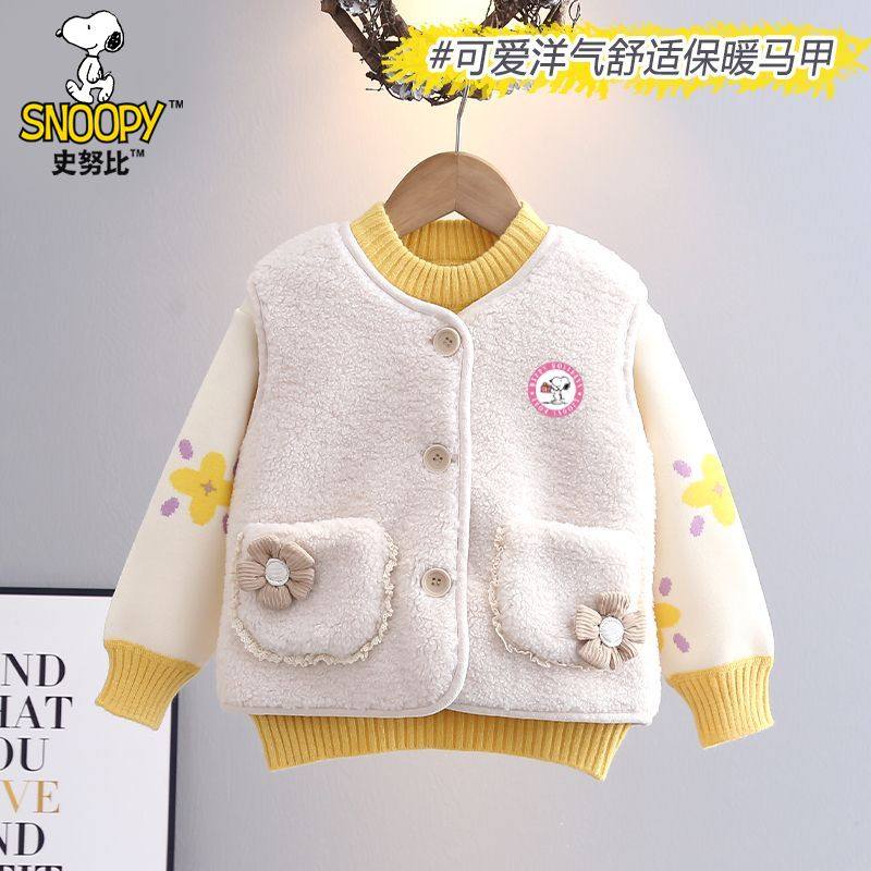 史努比女童马甲春秋冬新款羊羔绒保暖背心上衣小女孩休闲百搭外套