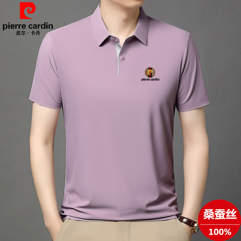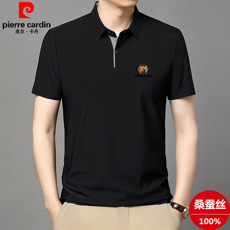 皮尔卡丹正品桑蚕丝短袖t恤男士休闲拉链翻领半袖冰丝无痕polo衫