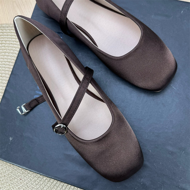 法式复古玛丽珍鞋方头平底鞋春季软底女鞋子缎面一字带配裙子单鞋