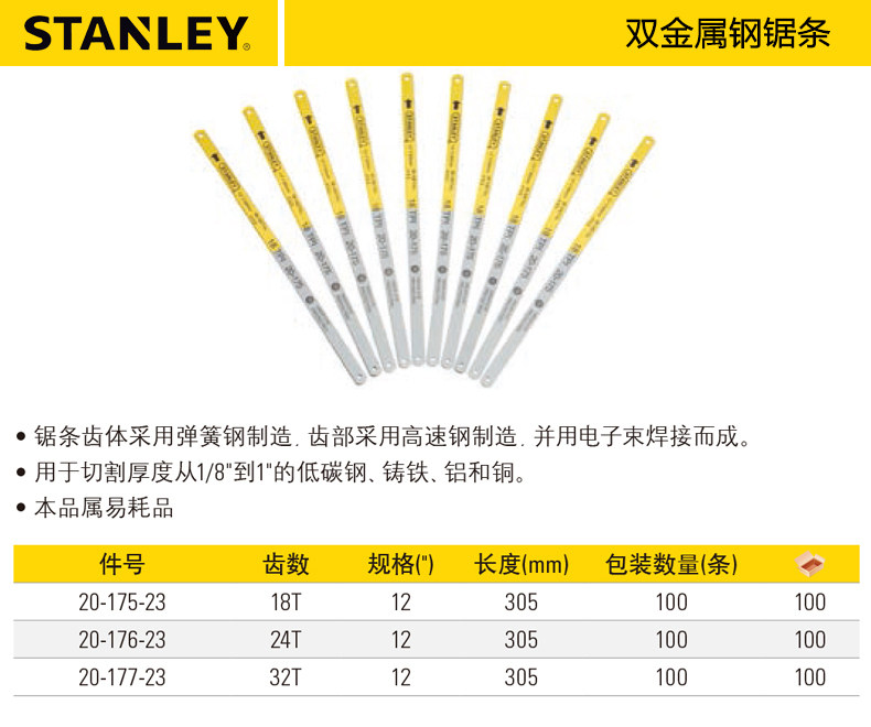 史丹利钢锯条手用双金属切割高速钢家用手工木工塑料不锈钢锯片