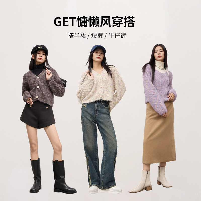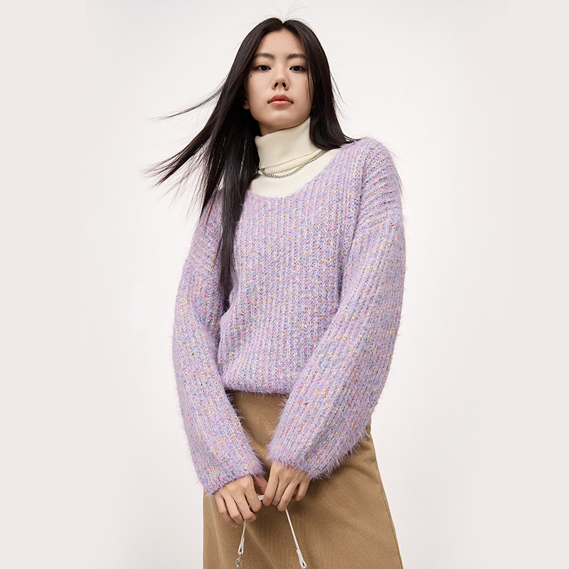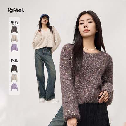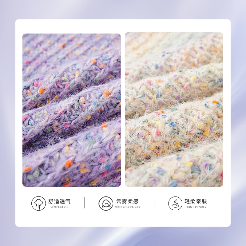 普普风“彩虹糖”系列温柔彩纱套头衫+开衫外套女秋冬百搭厚7639