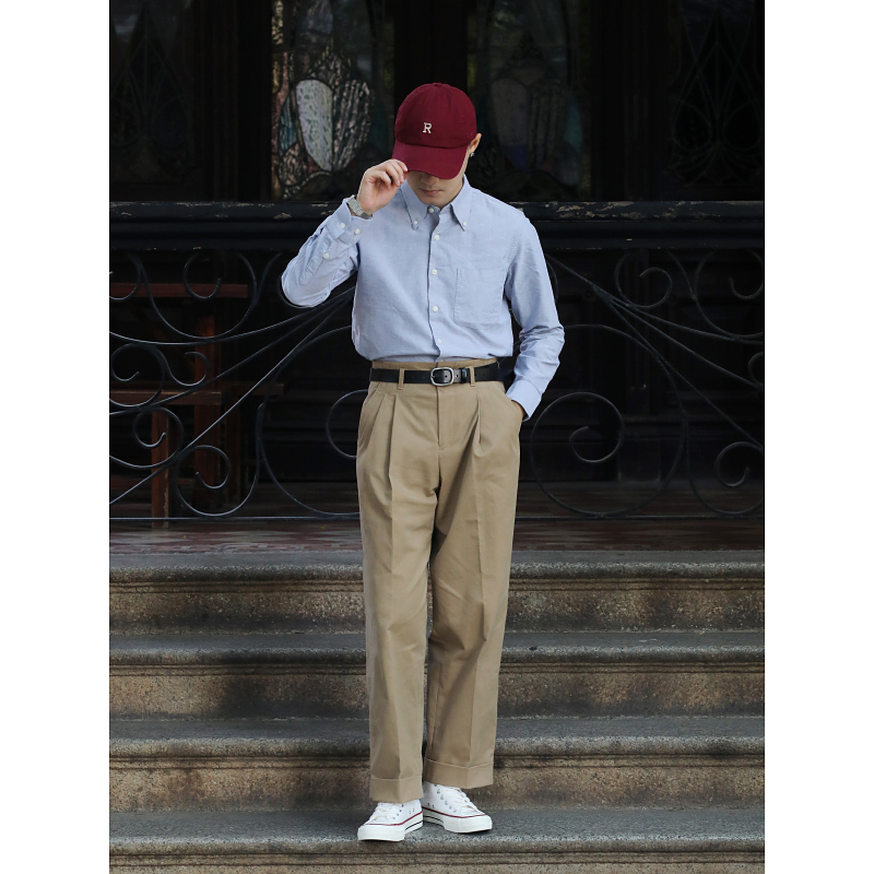 学院风纯棉口袋牛津纺衬衫美式常春藤ivy style修身尖领长袖衬衫