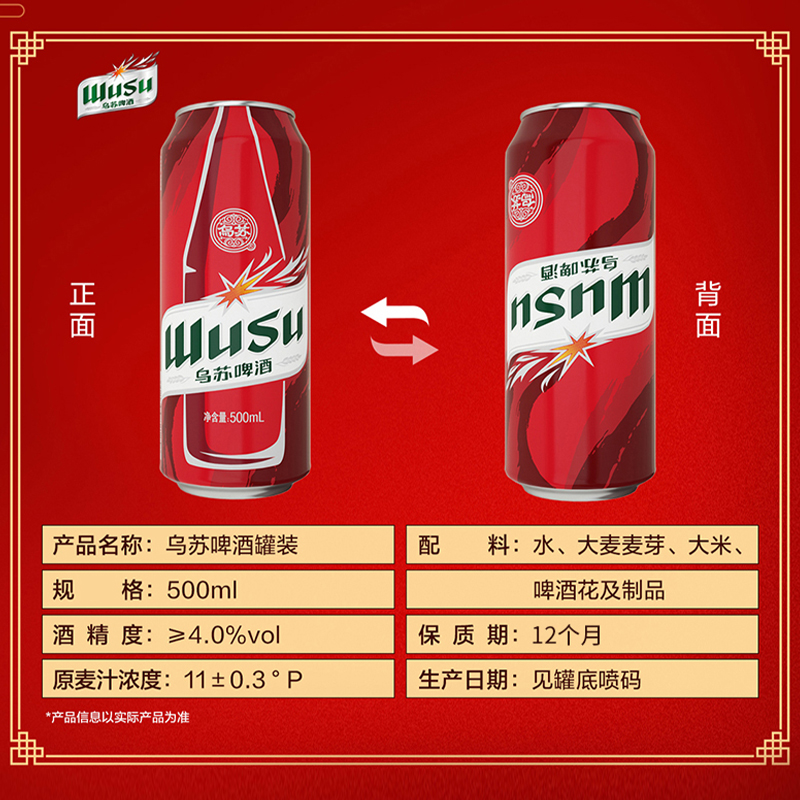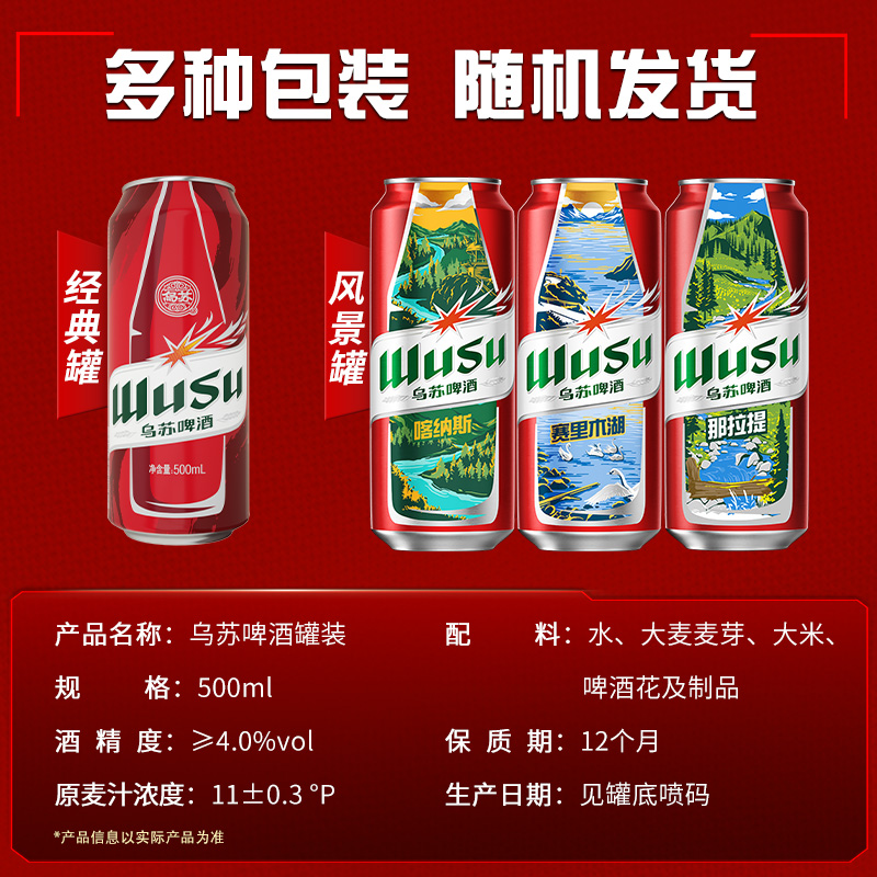 乌苏啤酒红乌苏500ml*12罐硬核乌苏爽劲甘醇烈性拉格整箱非原箱