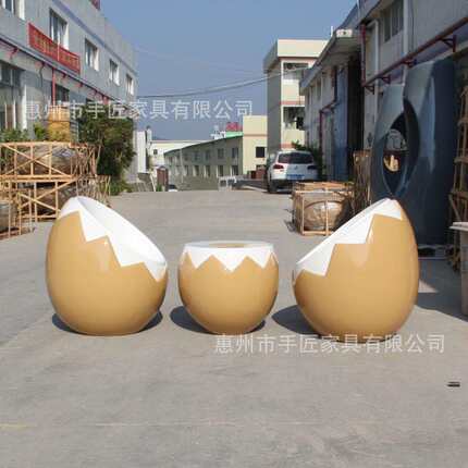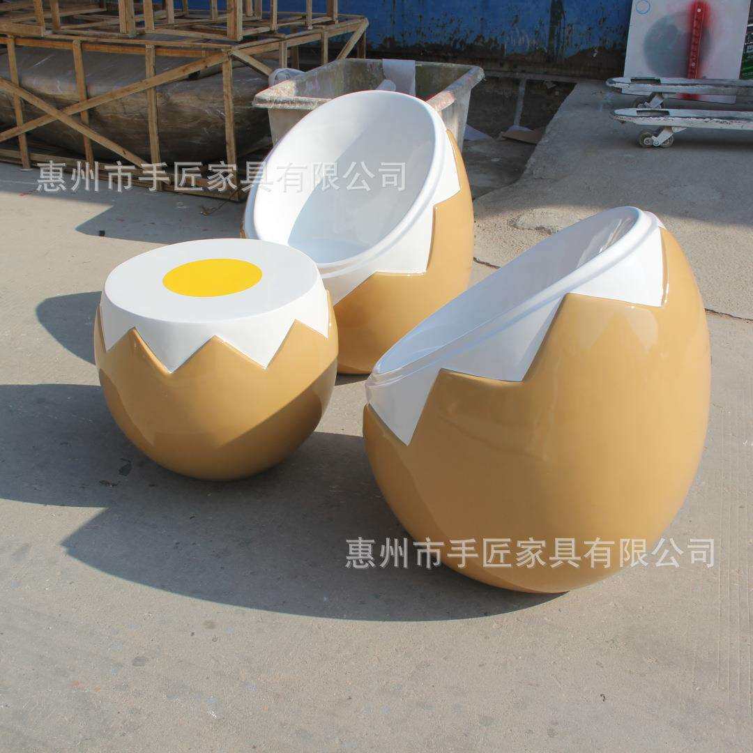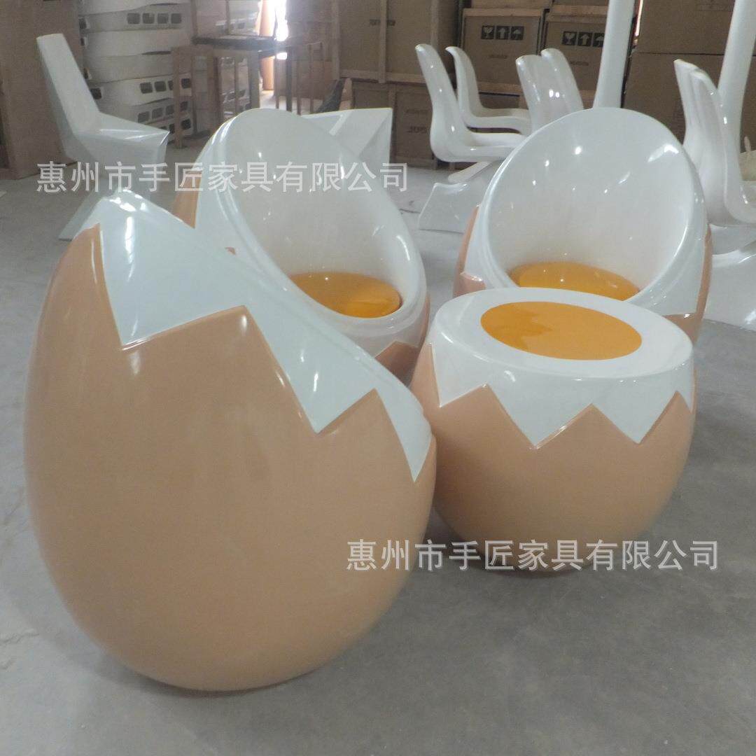 玻璃钢休闲家具餐厅美食店鸡蛋组合桌子椅子成套家具蛋壳茶几摆件