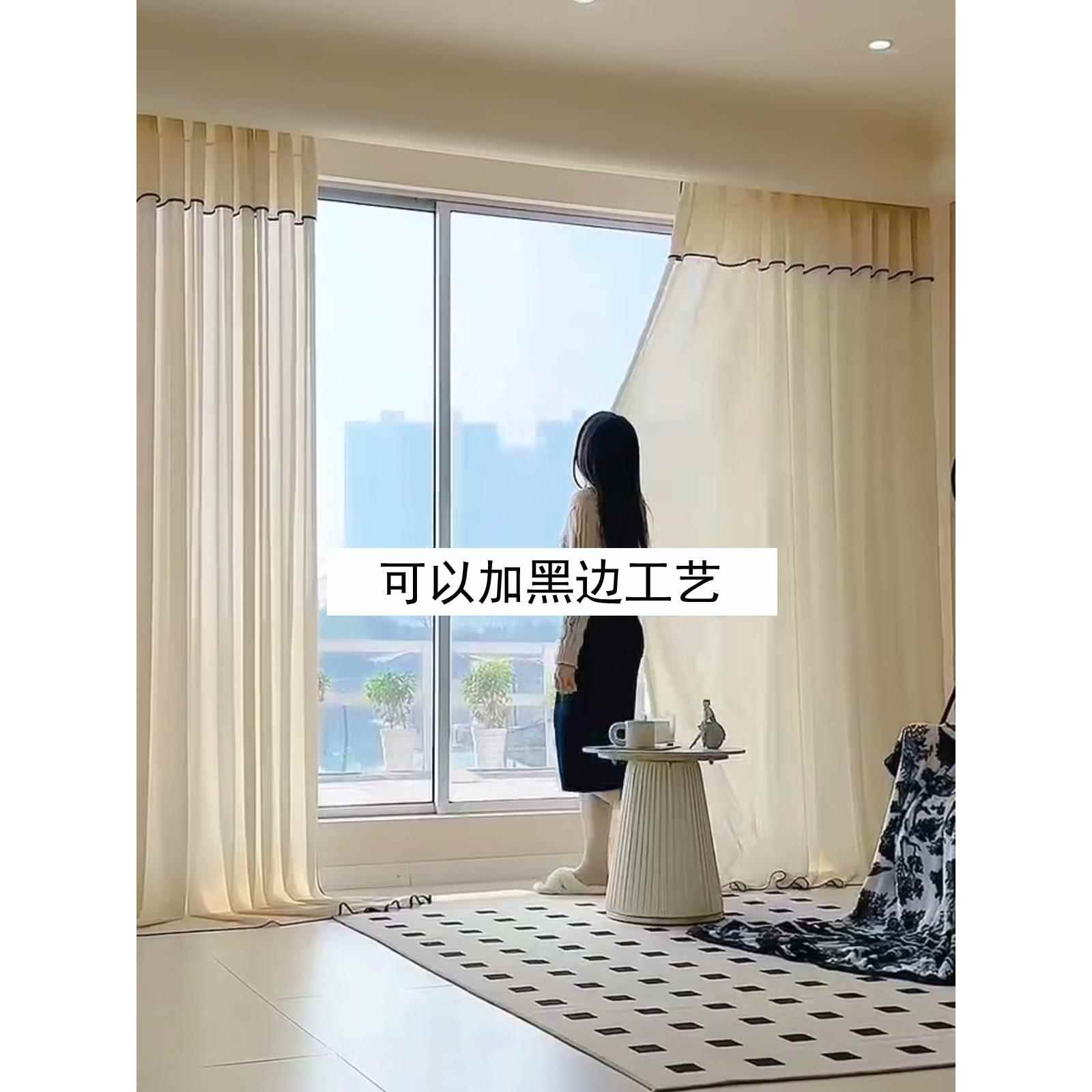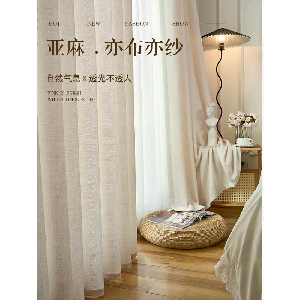 2025新式遮光窗帘适合小窗户的窗帘法式复古日式亚麻遮光奶油色透