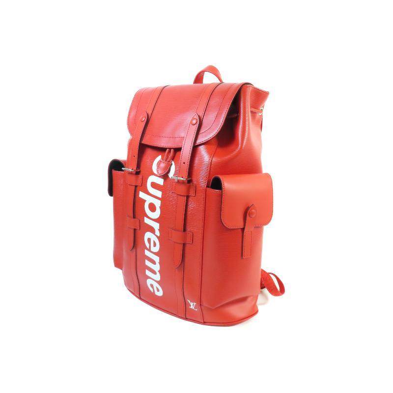 中古LV路易威登男包A级95新Backpack背包牛皮双肩包红色 HK时尚