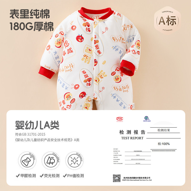 婴儿棉服夹棉连体衣180g棉衣纯棉a类男女宝宝新生儿冬季哈衣爬服