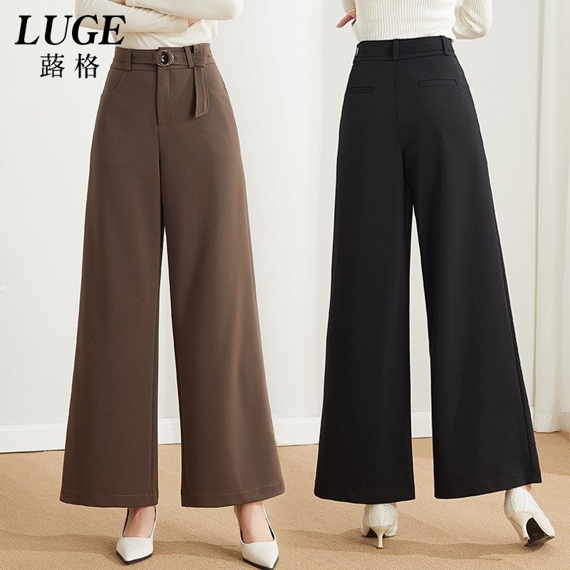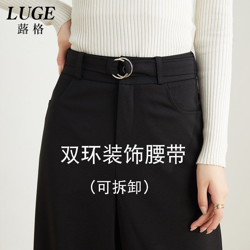 卡其色阔腿裤女2024新款窄版直筒裤裙女士垂感阔脚裤春秋九分西裤