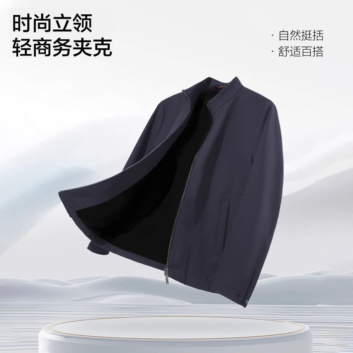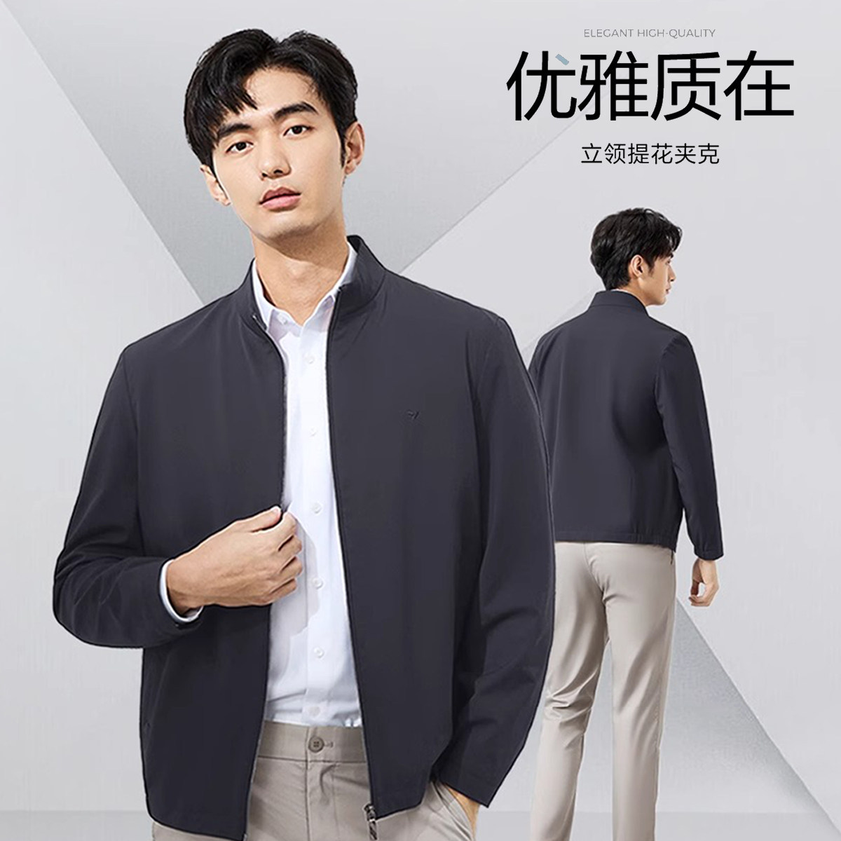 柒牌夹克衫外套男士2025秋新款时尚休闲老干部爸爸装防风立领提花