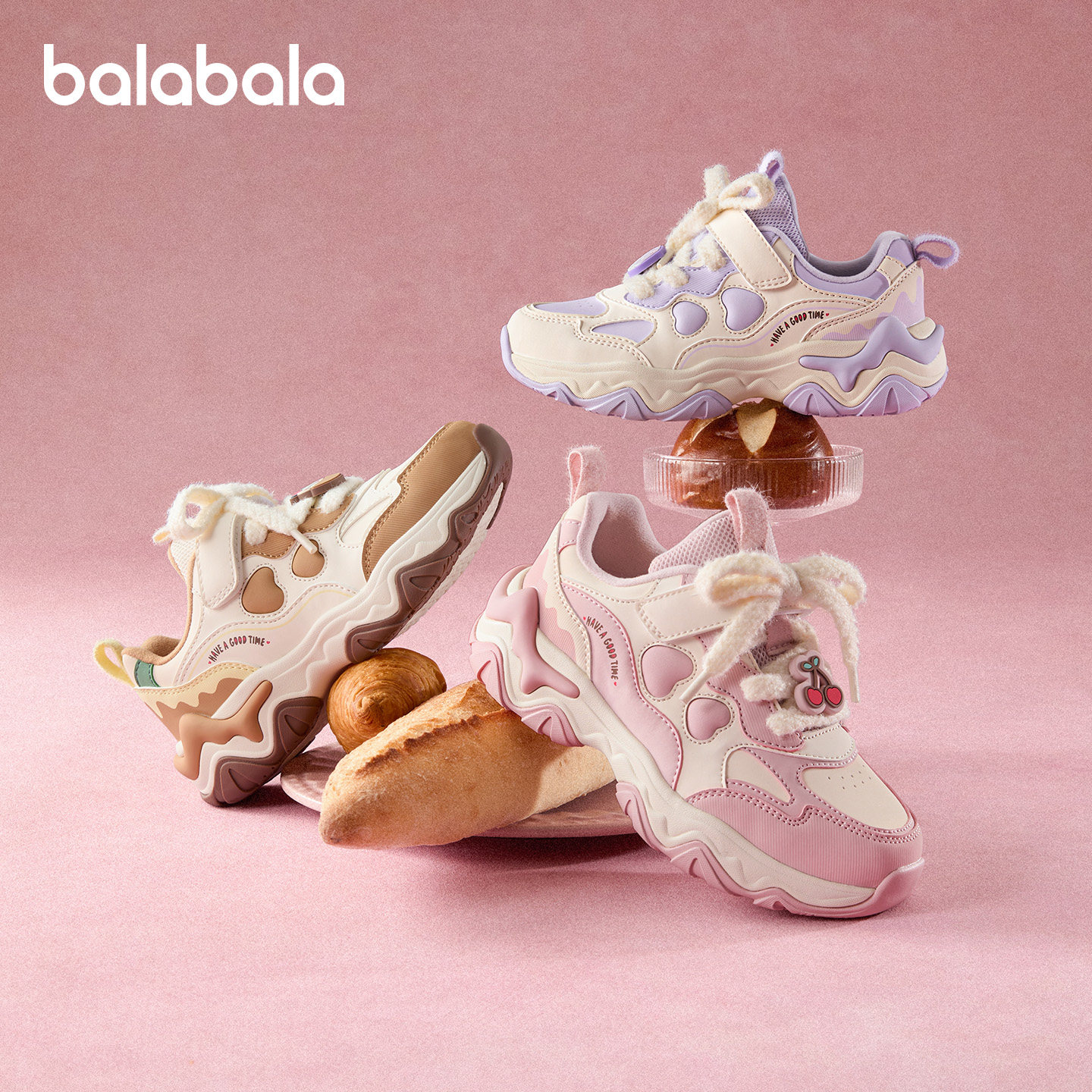 巴拉巴拉女童运动鞋儿童加绒老爹鞋大童保暖鞋子2025冬季新款童鞋