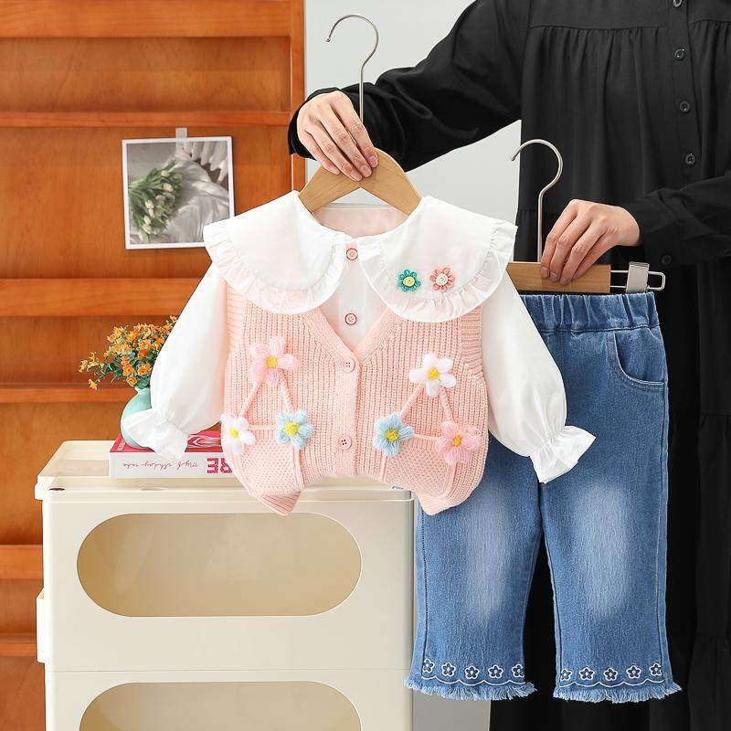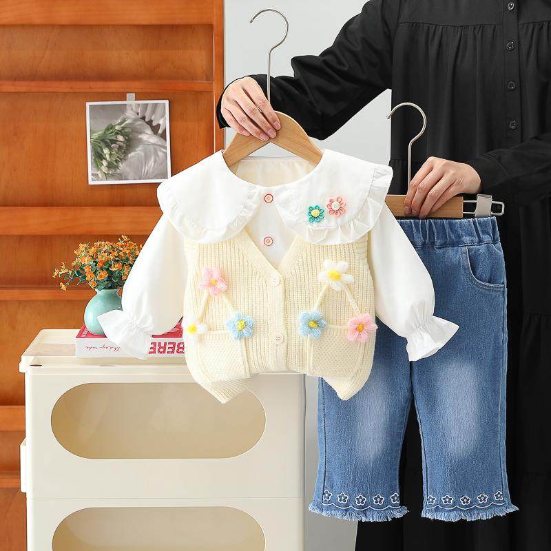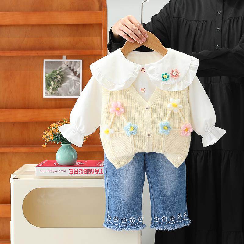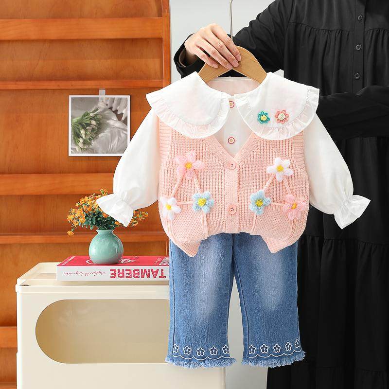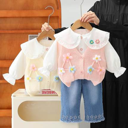 女宝宝洋气时髦毛衣衬衫三件套婴儿童韩版春装套装女孩春秋女童装