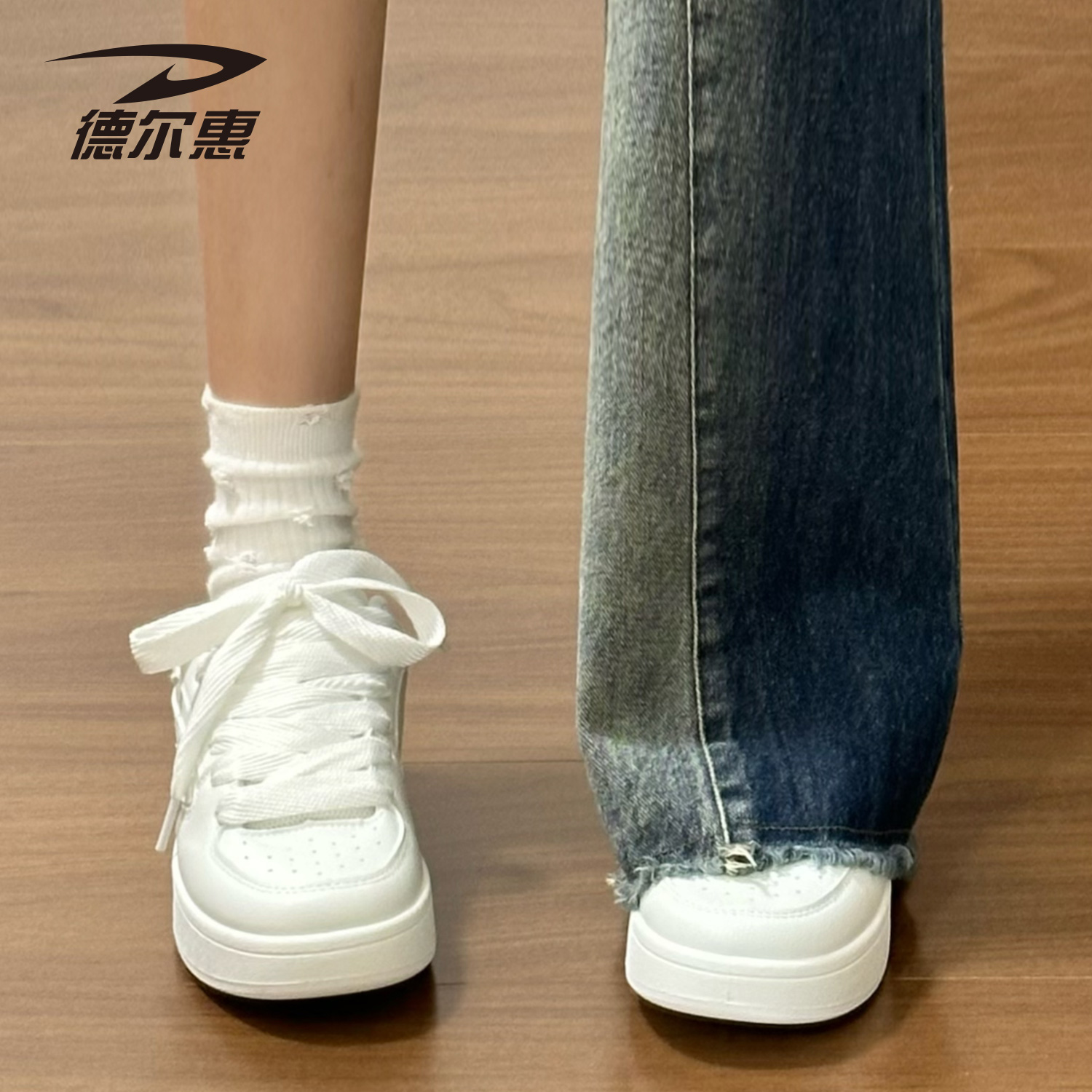 德尔惠小白鞋女款2025新款爆款厚底增高百搭配裙子透气运动鞋板鞋