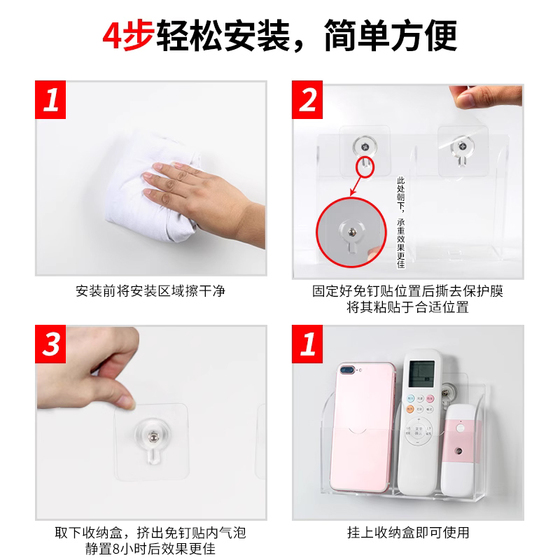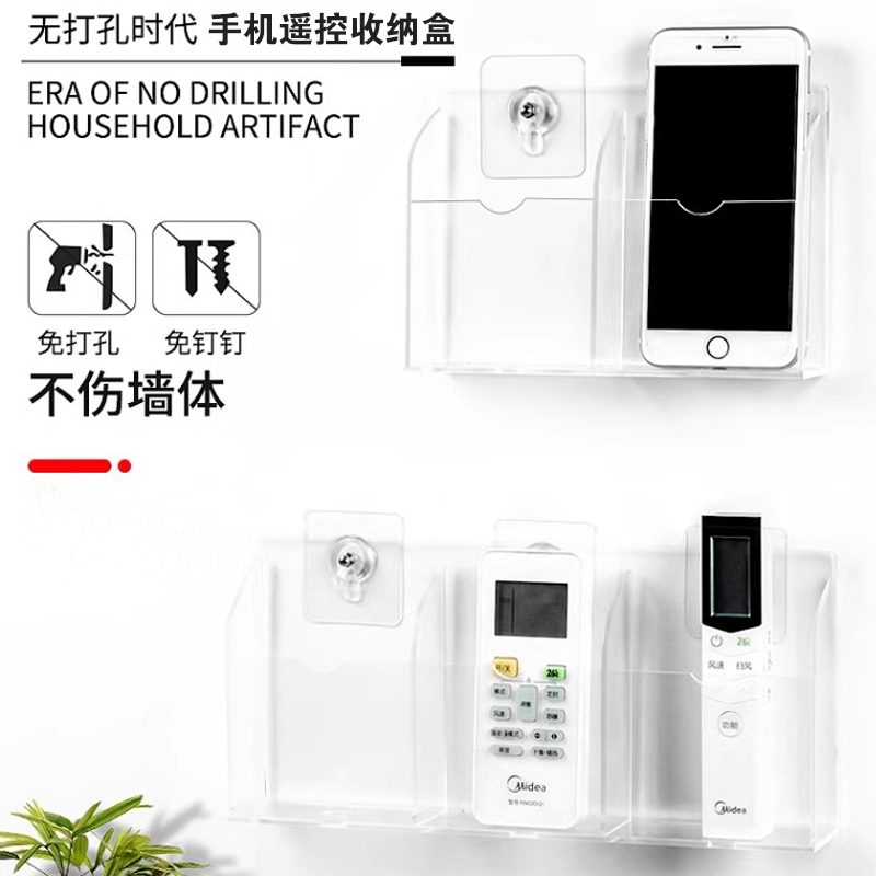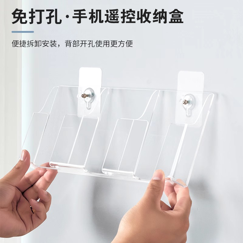 手机收纳盒多功能亚克力置物架墙上挂壁遥控器存放盒床头透明支架
