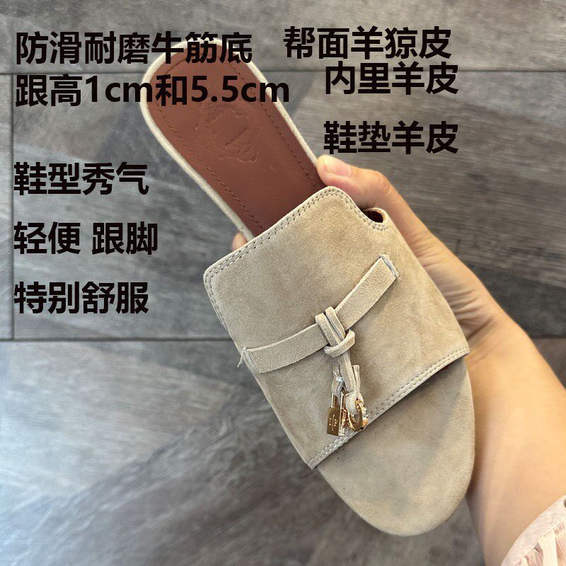 欧洲站羊皮鱼嘴半托夏季凉鞋拖女夏外穿精致不累脚穿裙子搭配的鞋