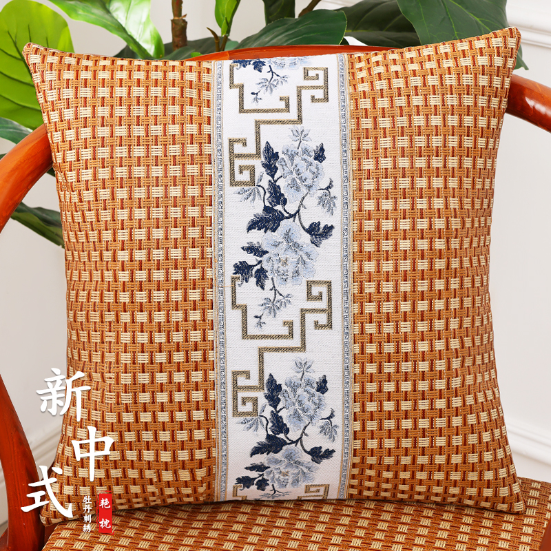 夏季抱枕红木沙发客厅凉席靠枕套新中式太师椅腰靠垫竹藤席抱枕套