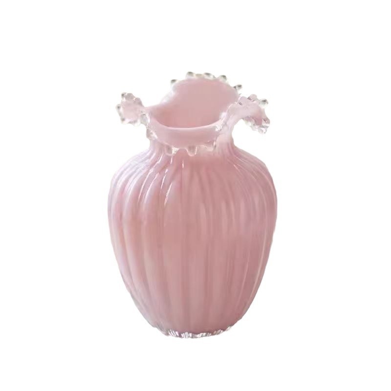 网红创意浪花口花瓶轻奢高级感玻璃透明水养客厅摆件复古水培花器