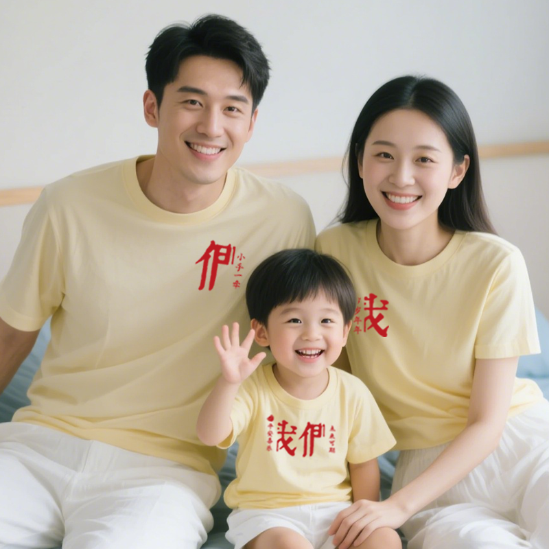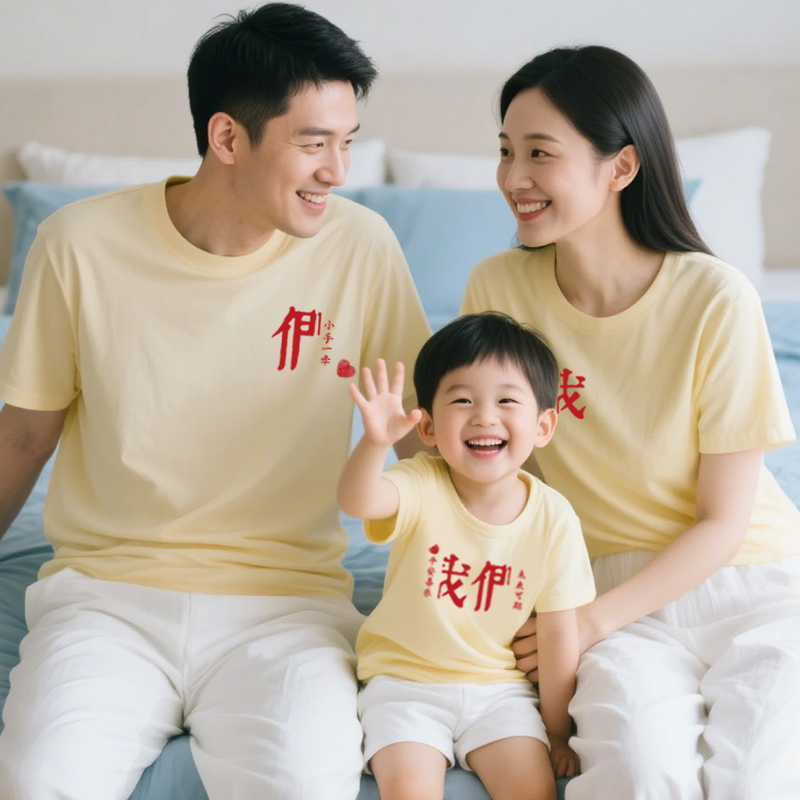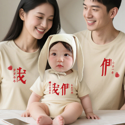 2025新款婴儿拍照亲子装夏装t恤一家三口四口百天周岁拍照全家装