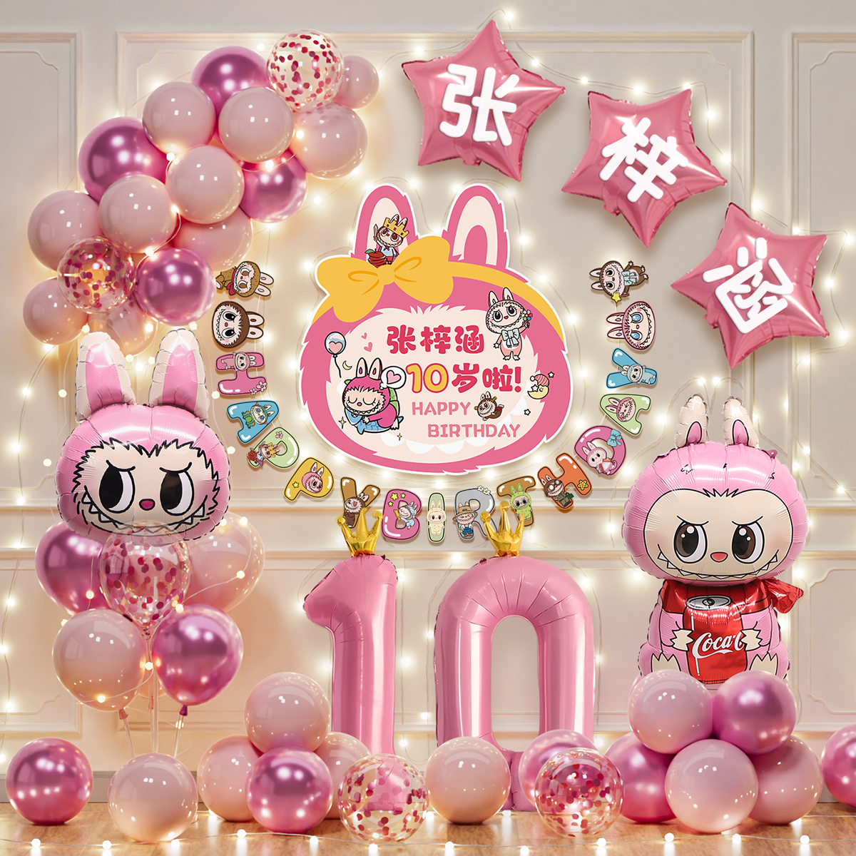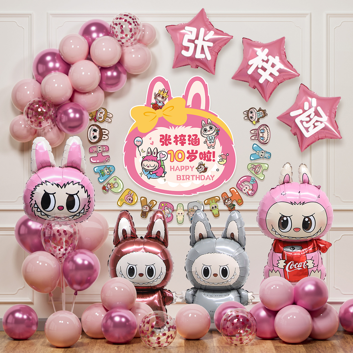 拉布布女孩10周岁生日快乐仪式感布置儿童气球派对场景装饰背景墙