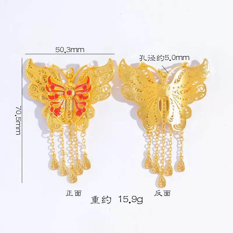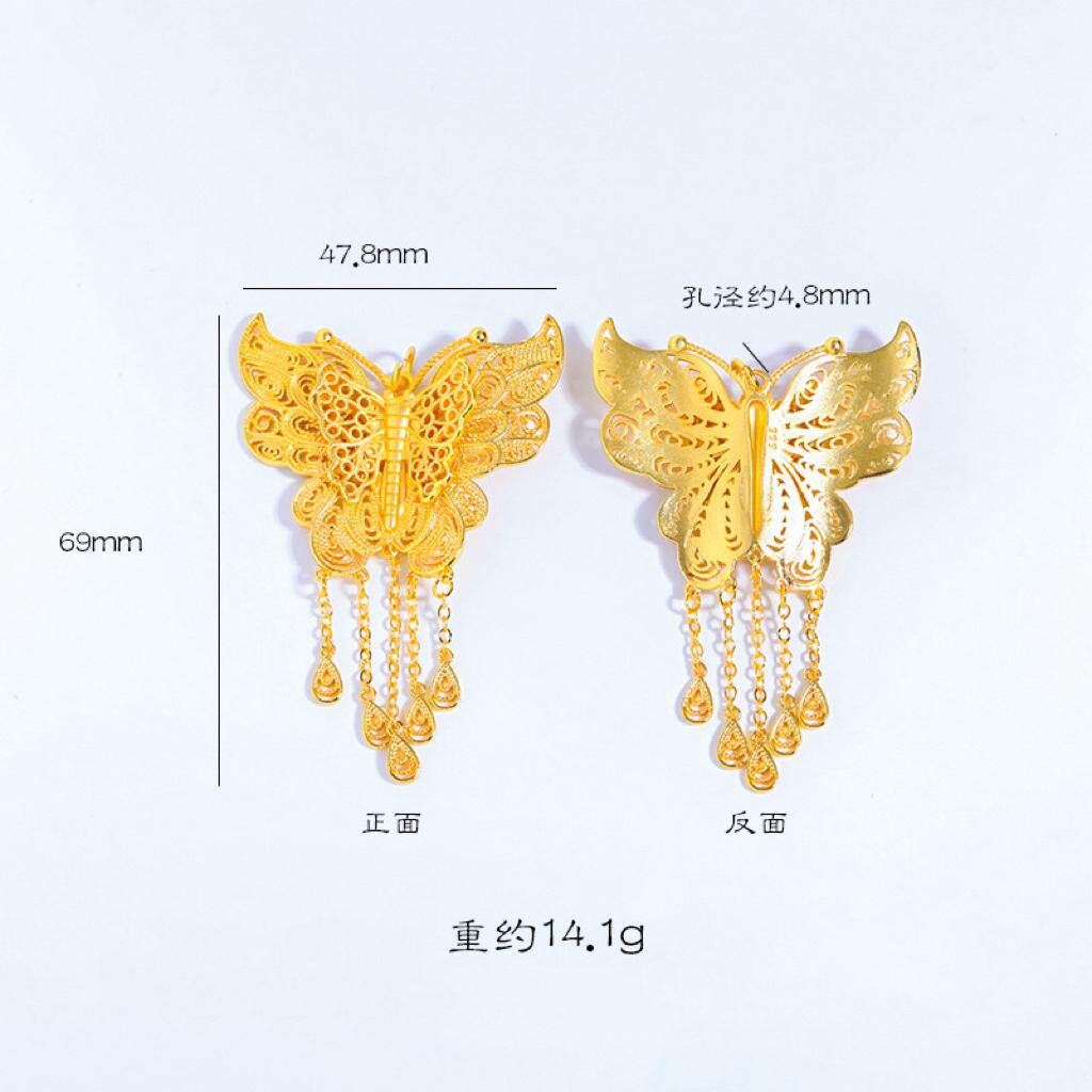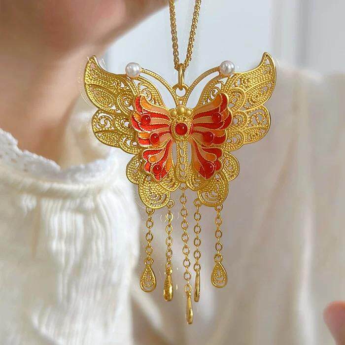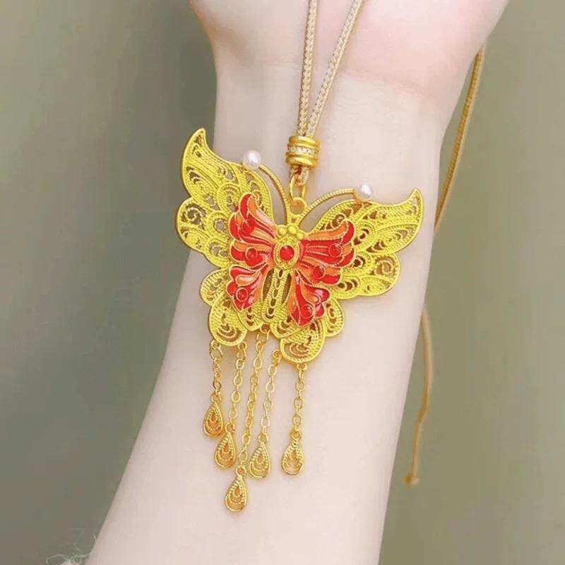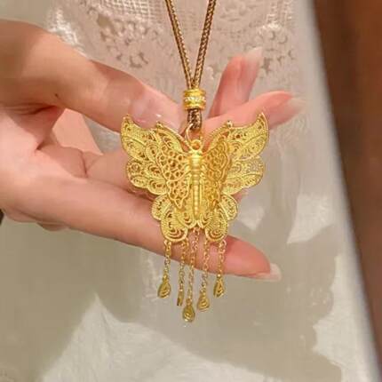 翎蝶流苏沙金吊坠镂空项链花丝仿黄金色蝴蝶锁骨链精致女金店同款