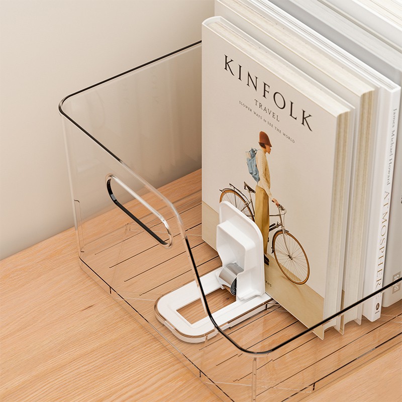 透明书立架防书本倾倒桌面书架可伸缩桌面收纳盒学生课本置物架