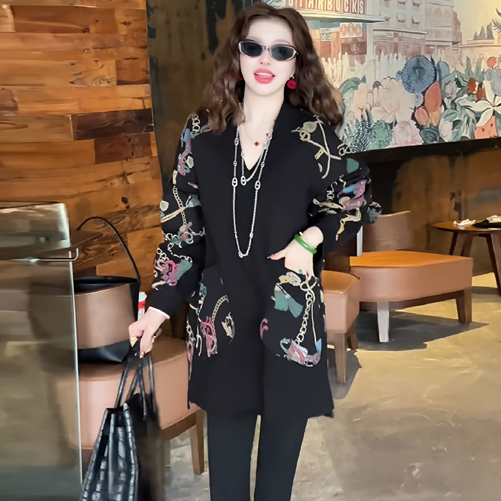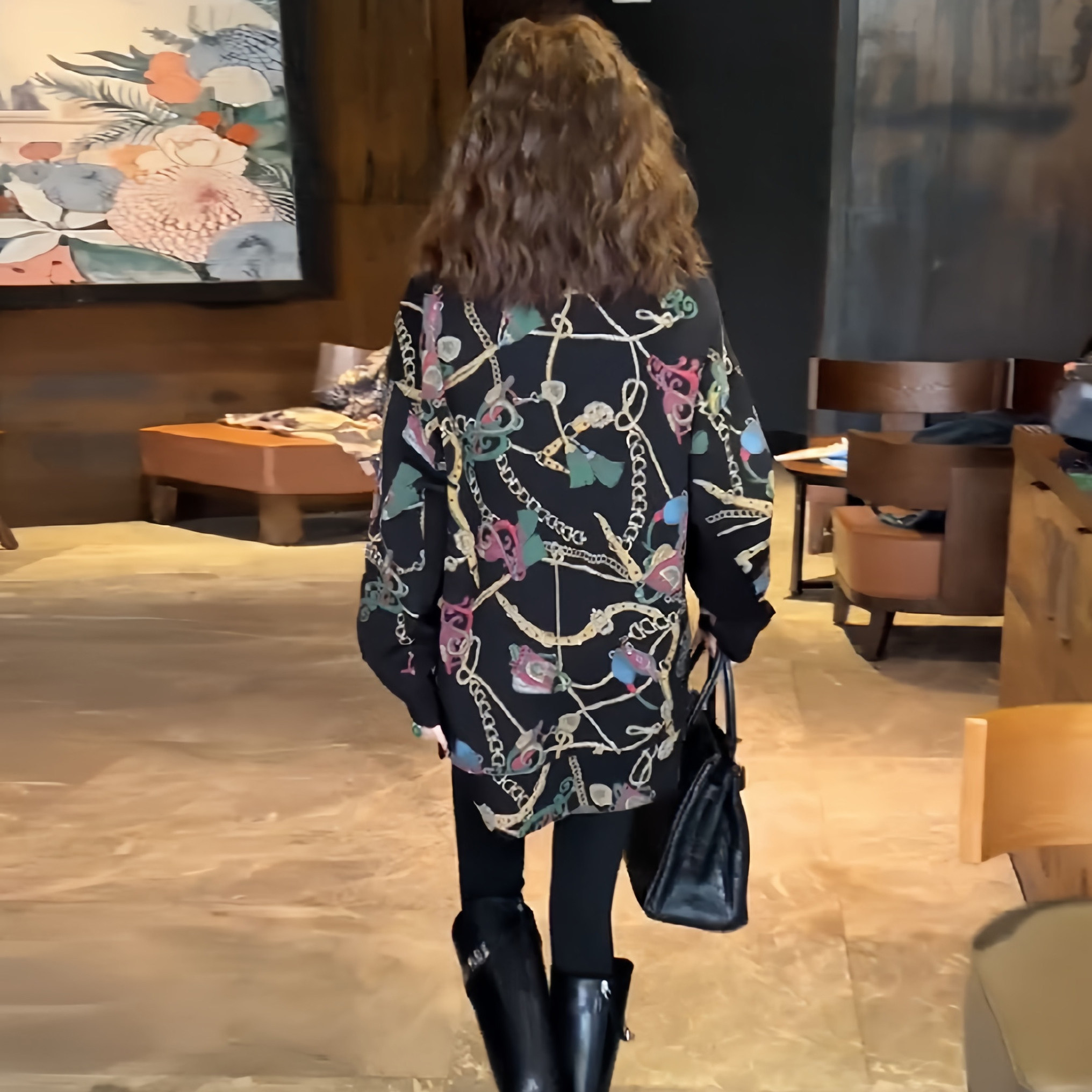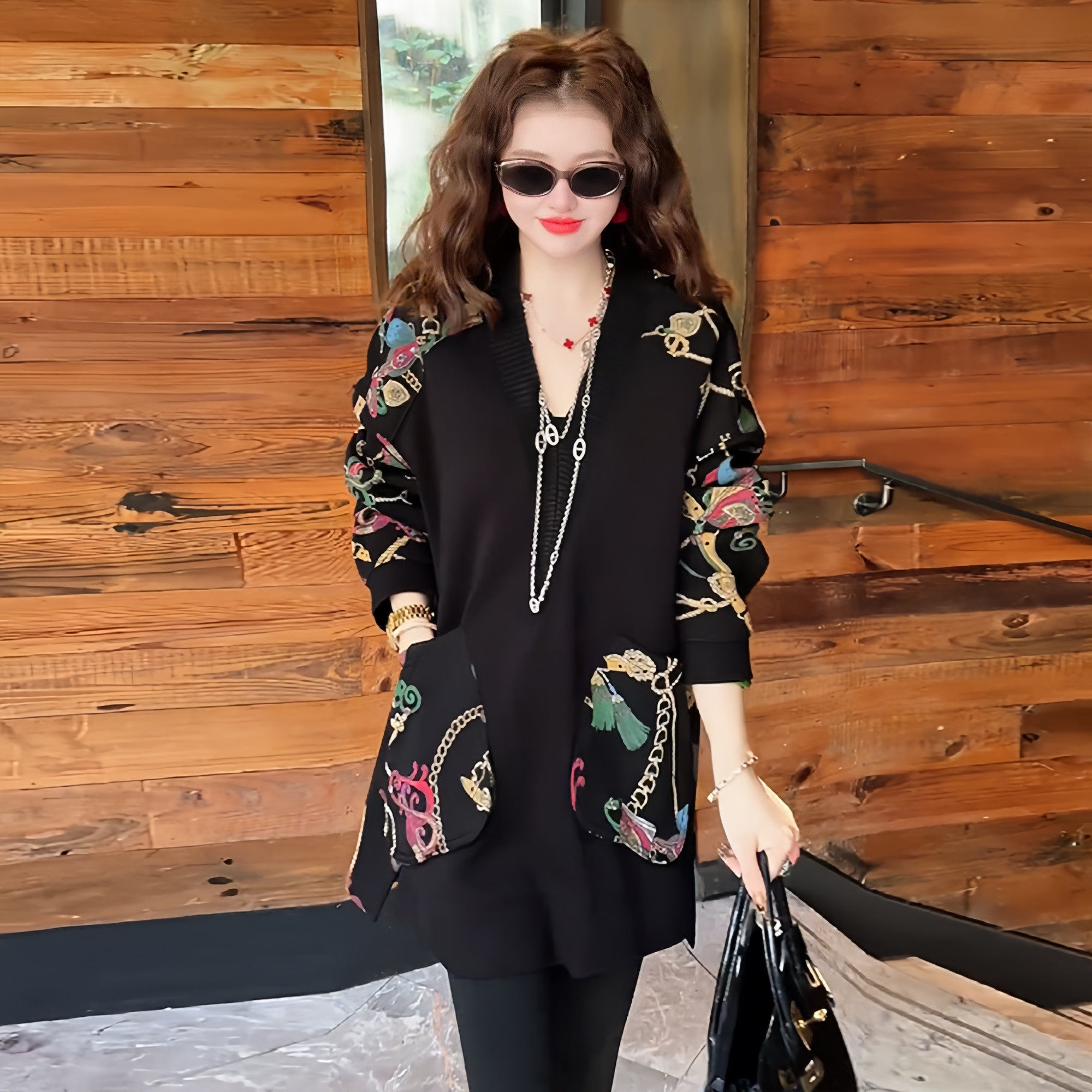 设计感宽松休闲时尚卫衣女2025年秋冬新款慵懒风拼接长袖印花上衣