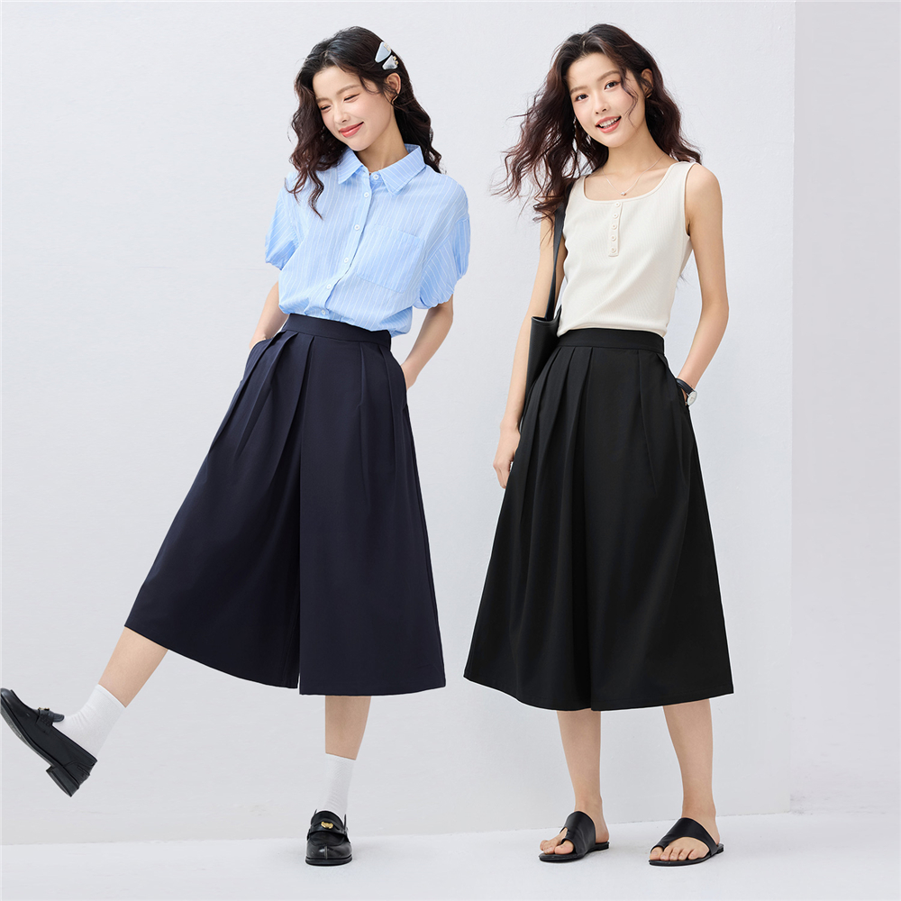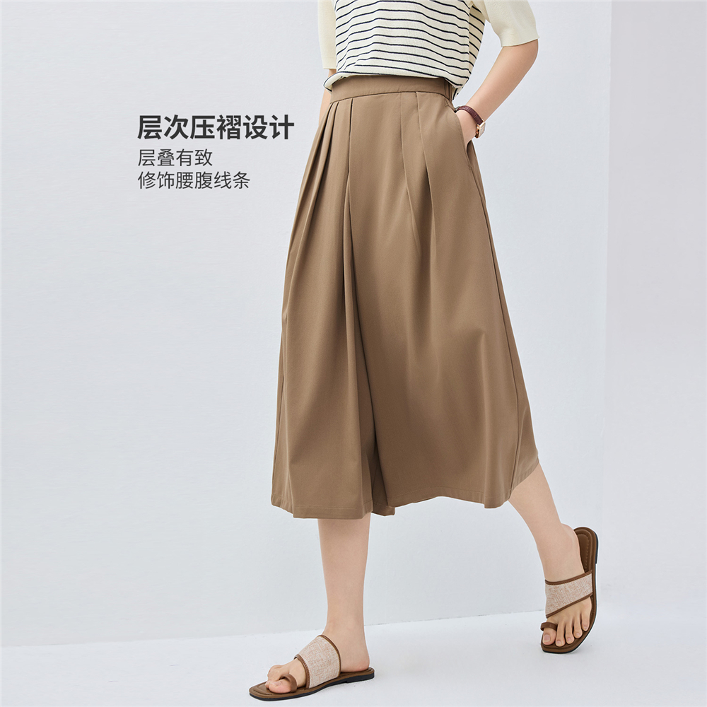 佐丹奴裙子女装压褶半松紧腰梭织阔腿九分西装裙裤 05425085