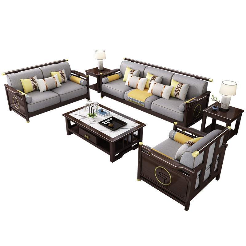 新中式轻奢高端全实木沙发组合 现代中式客厅木加布转角贵妃沙发