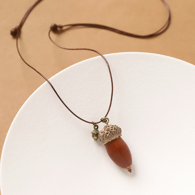 森系植物果实橡果吊坠简约长款毛衣链复古文艺小众编织项链女配饰