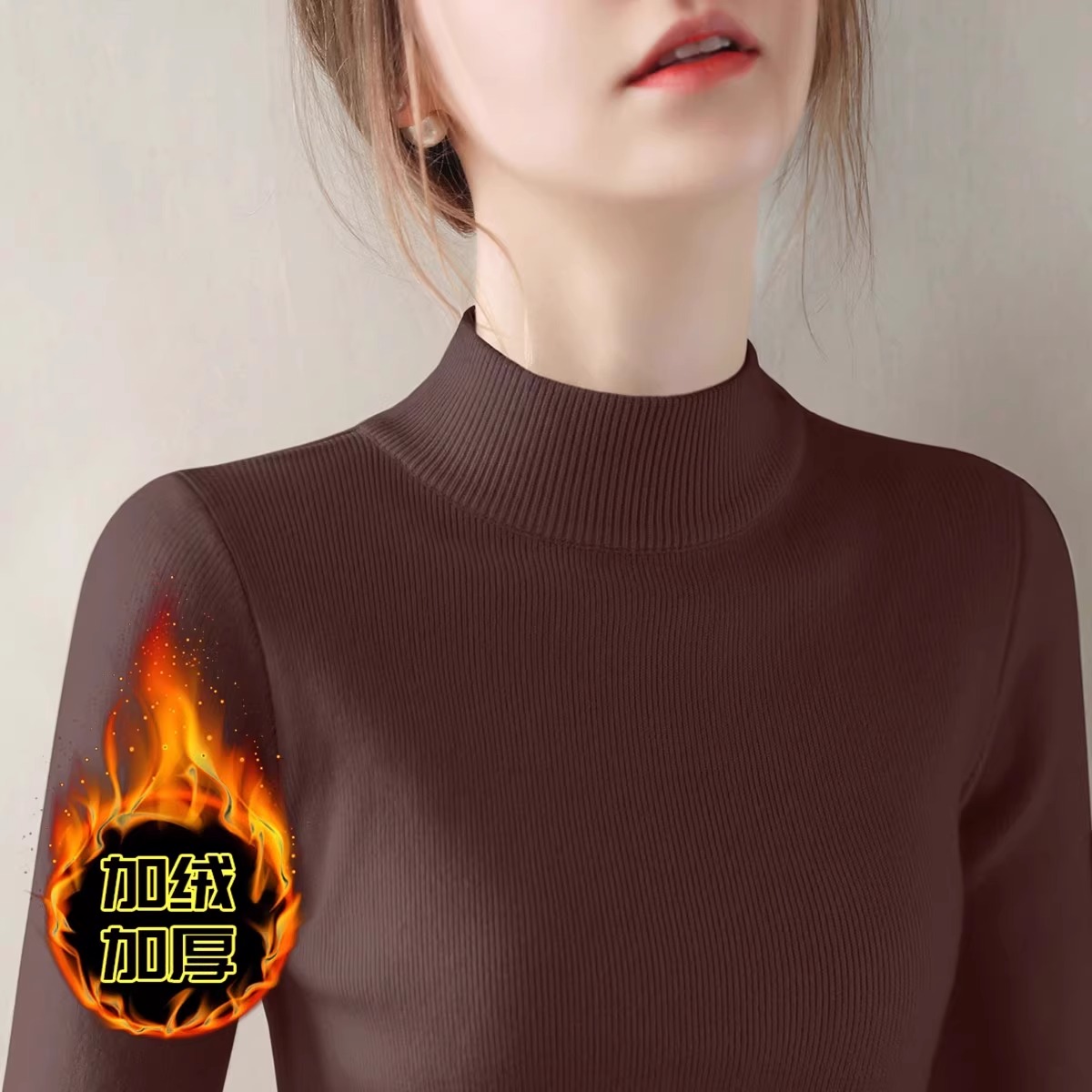 2025秋冬新款半高领羊毛修身长袖软糯针织打底衫女高级感内搭毛衣