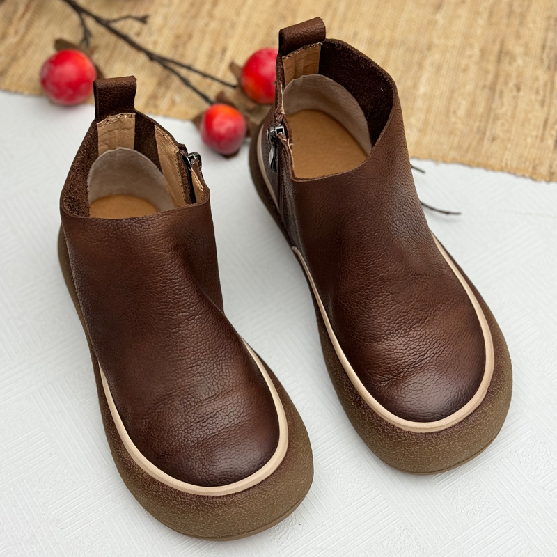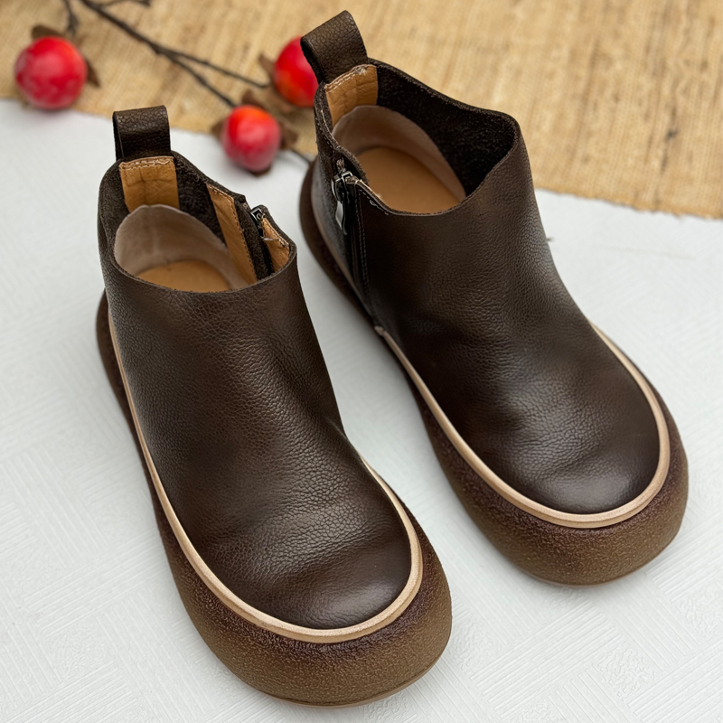 手工真皮复古马丁靴女2025秋冬新款厚底增高短筒靴休闲中老年靴子