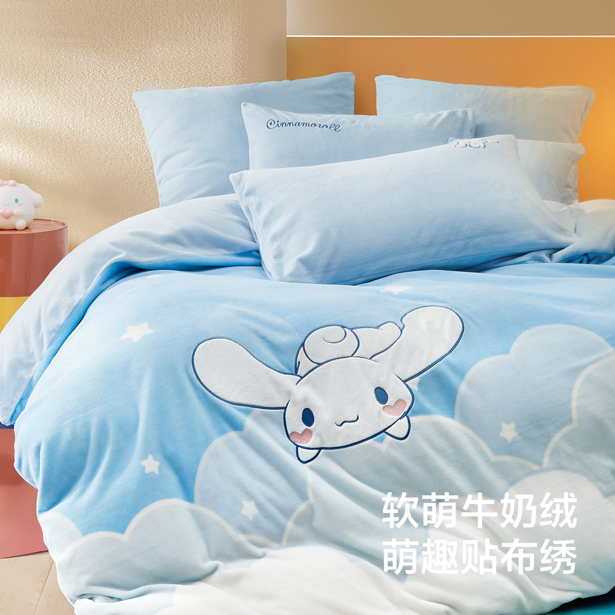 水星家纺牛奶绒四件套母婴级A类儿童床品三件套秋冬保暖床单被套