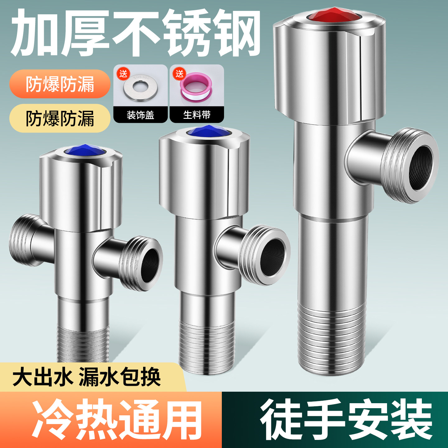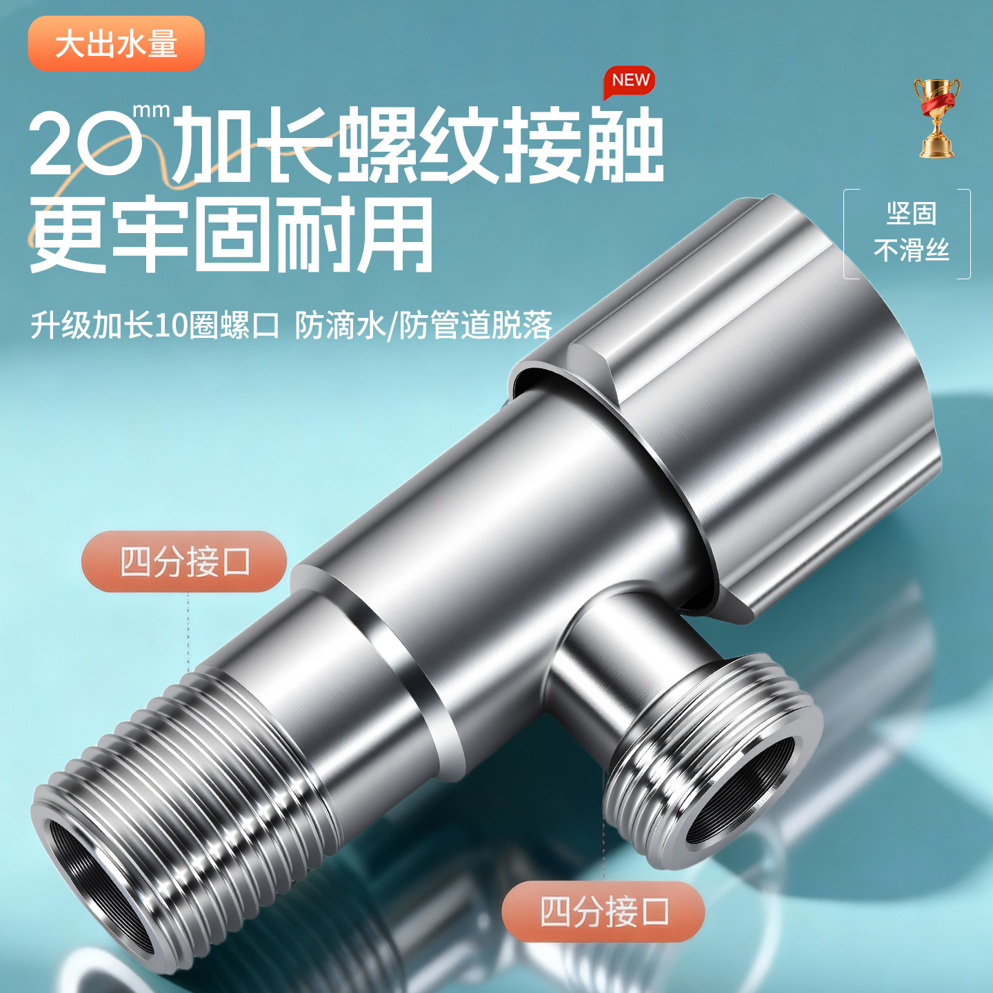 角阀304不锈钢三角阀门开关水家用马桶热水器进水冷一进二出加长