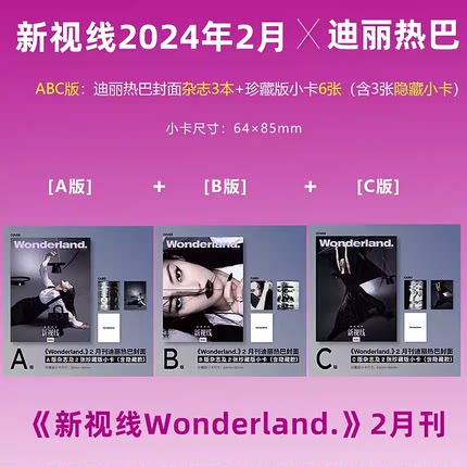 3款封面可选【赠官方小卡*3+隐藏卡*3】Wonderland新视线杂志 2024年2月封面迪丽热巴 内文:萧敬腾&林有慧 非时尚芭莎9月