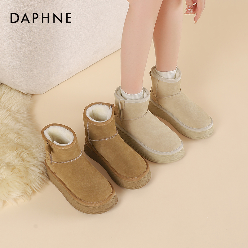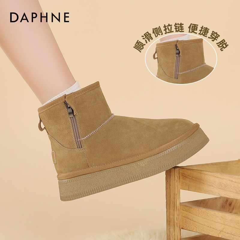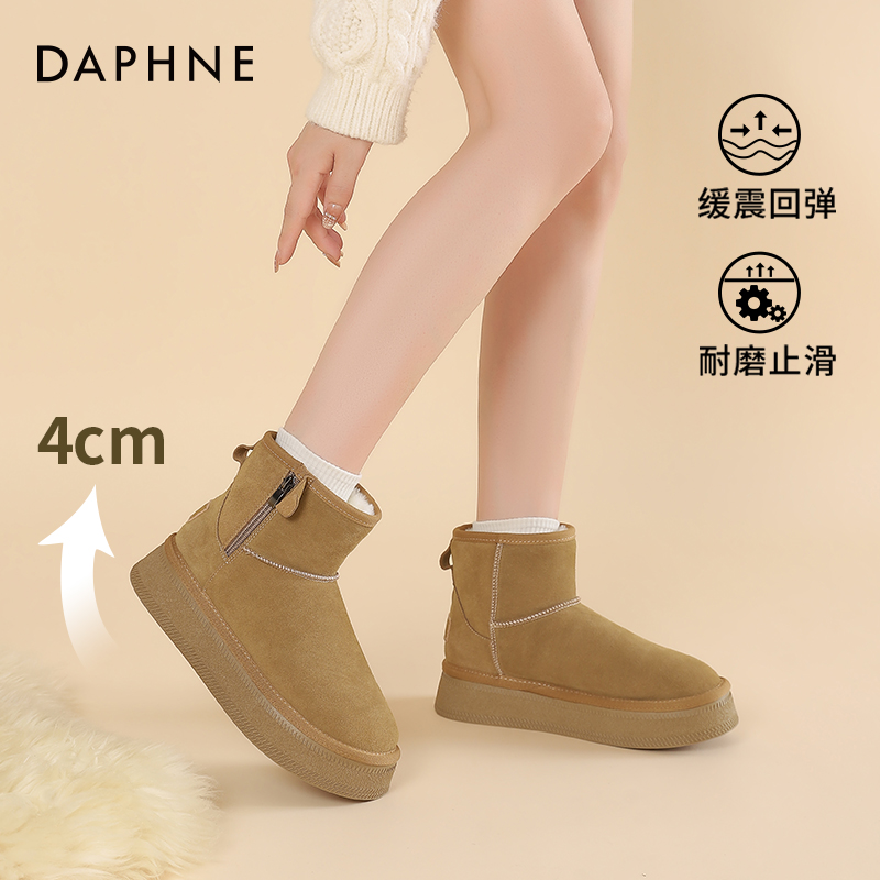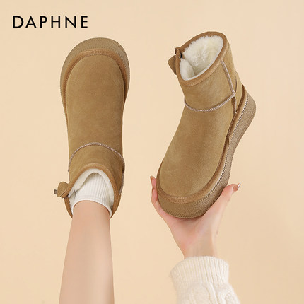 达芙妮厚底雪地靴女2025新款冬季加绒加厚保暖东北棉鞋厚绒面包鞋