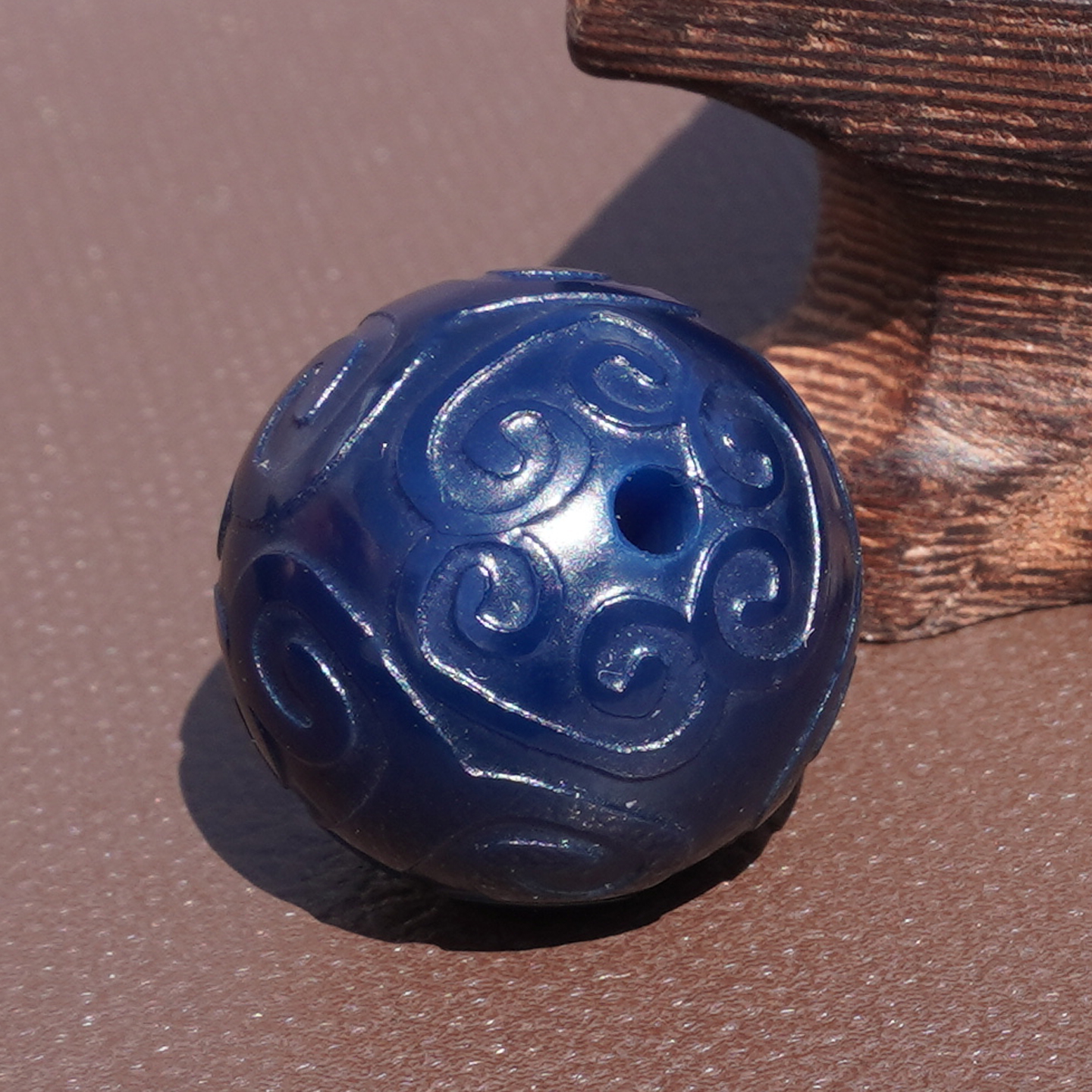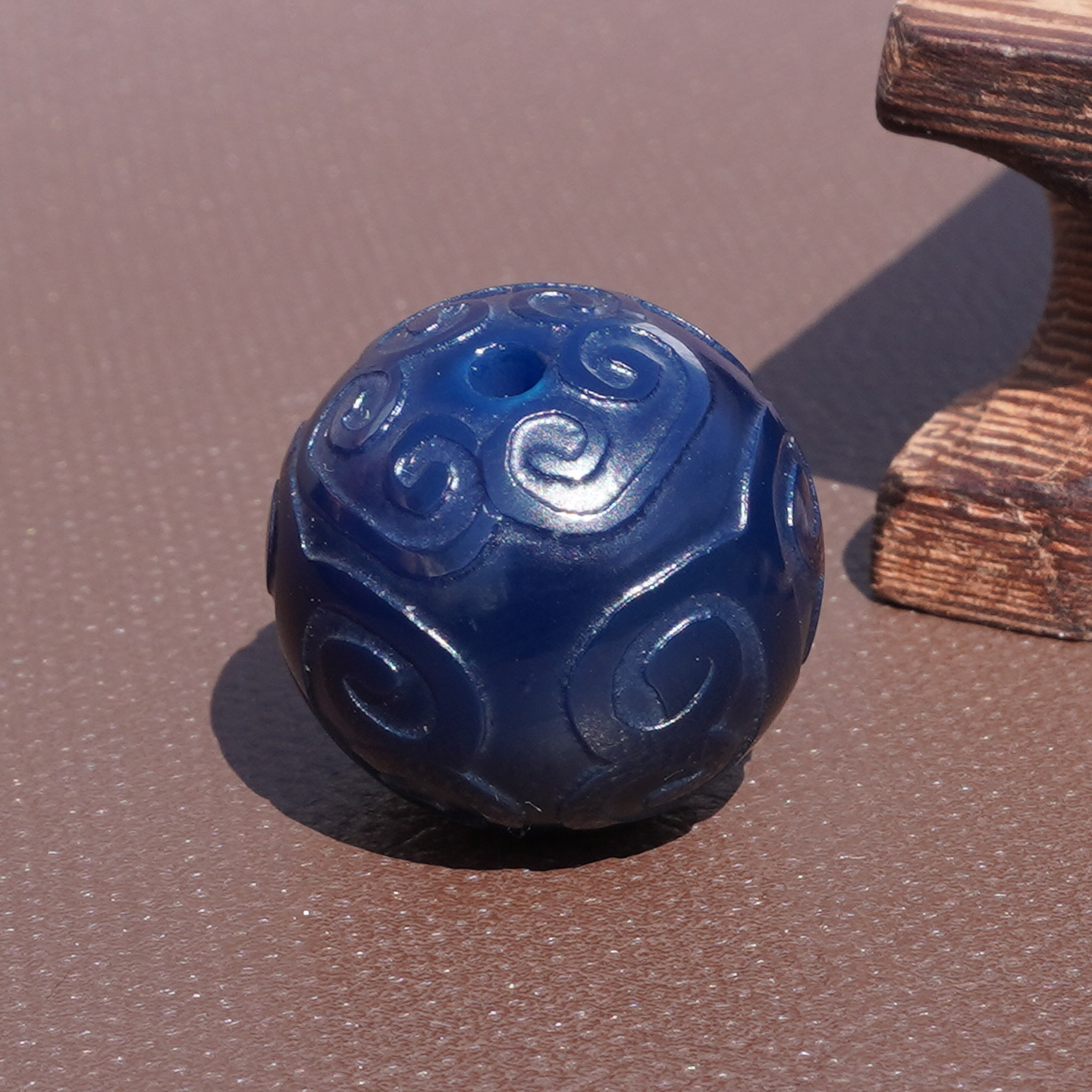 亮眼蓝玛瑙回纹雕花单珠散珠配饰