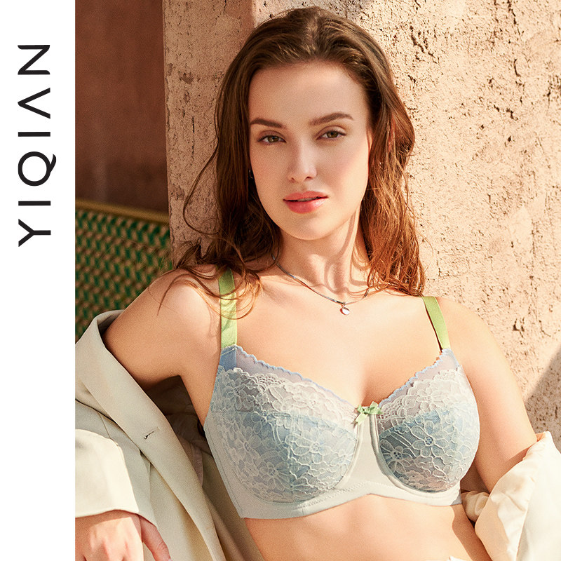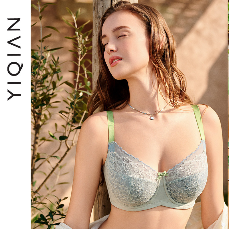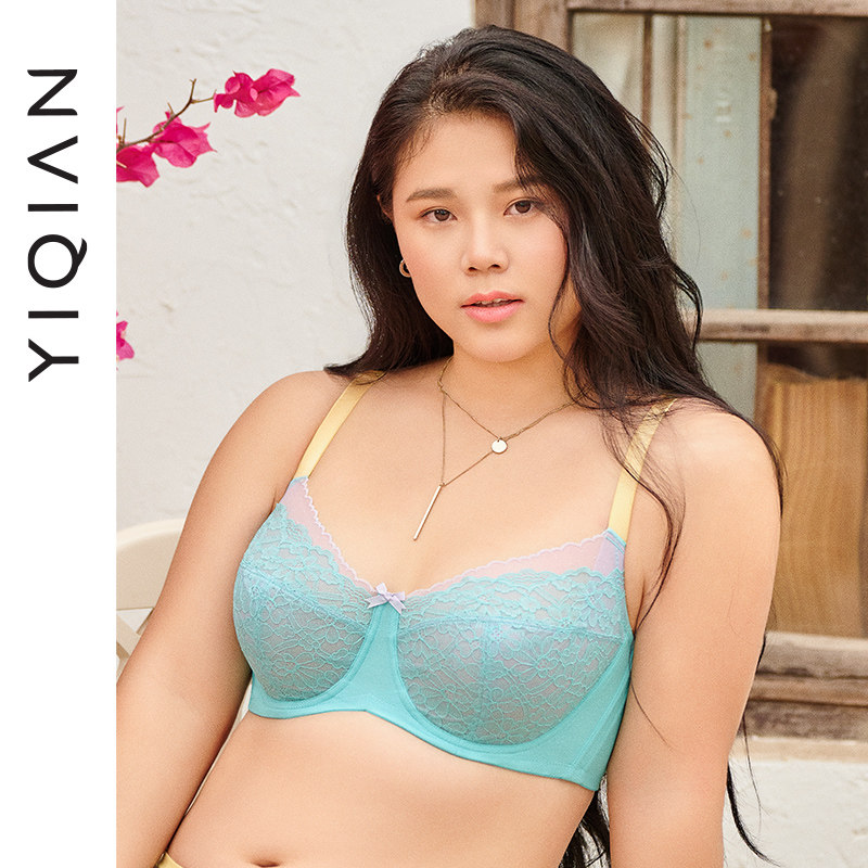 怡倩【清爽撞色大杯】内衣女胸大显胸小全罩杯薄款防凸点大码文胸
