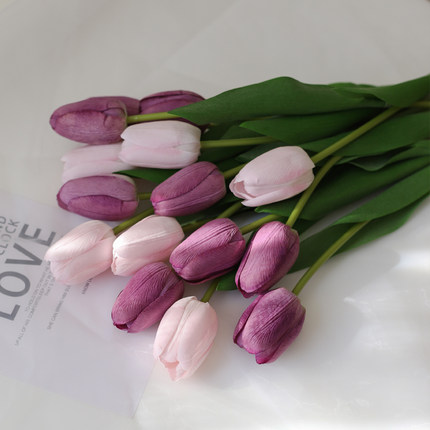 【手感保湿】紫色郁金香仿真花假花桌面摆花装饰绢花插花手捧花