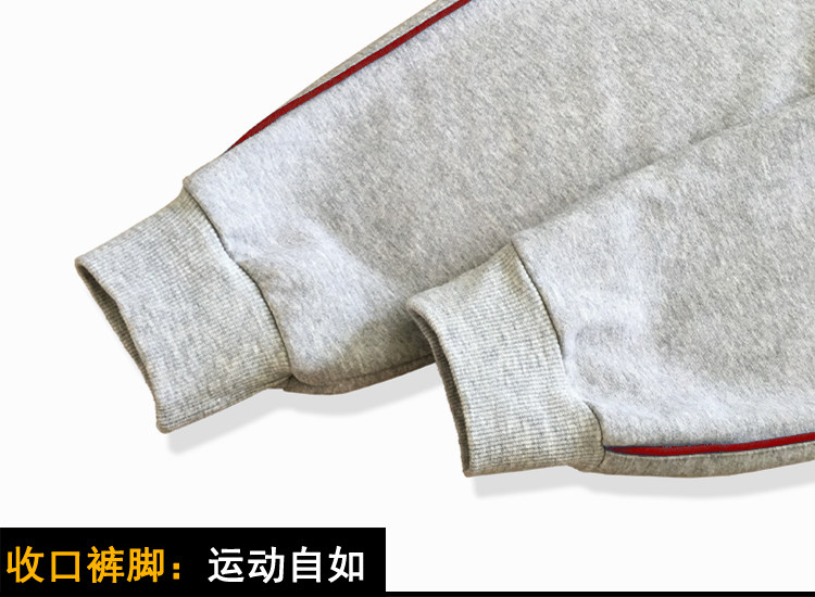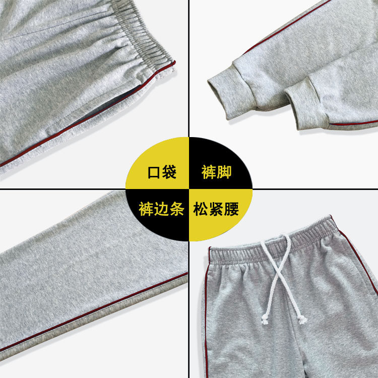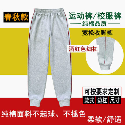 浅灰色男女学生裤纯棉酒红色细杠条中小学儿童宽松收脚运动长裤子