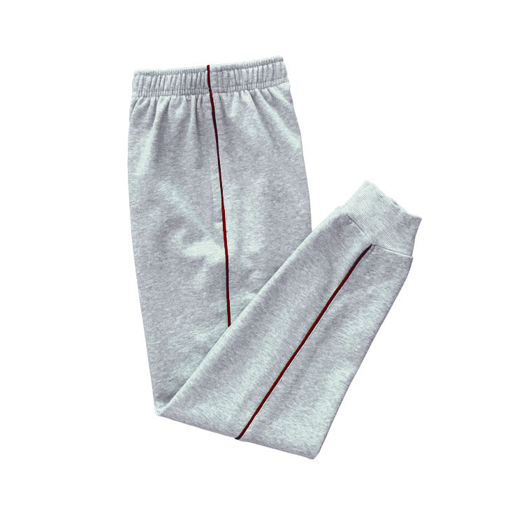 浅灰色长裤棉裤子酒红色细条收脚