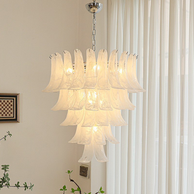 热销美式轻奢水晶玻璃吊灯法式奶油风楼中楼梯吊灯复式楼复古客厅