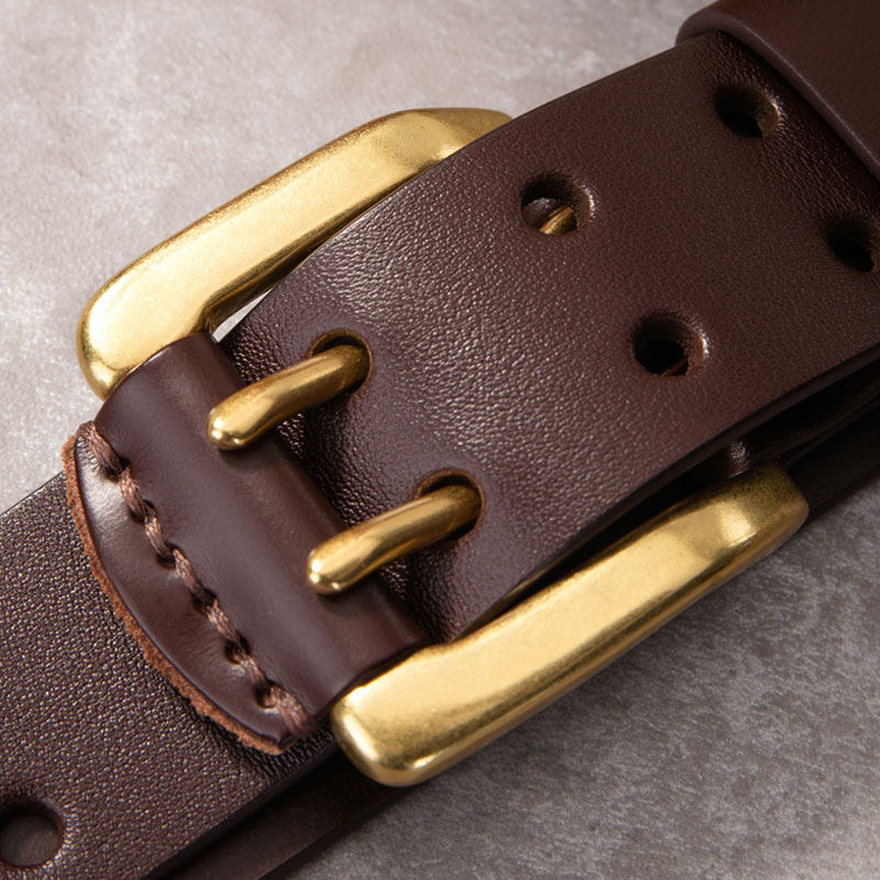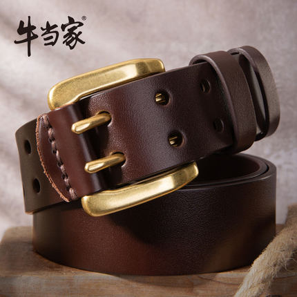 牛当家皮带男真皮纯牛皮腰带双针铜扣中青年男款针扣头层牛皮裤带