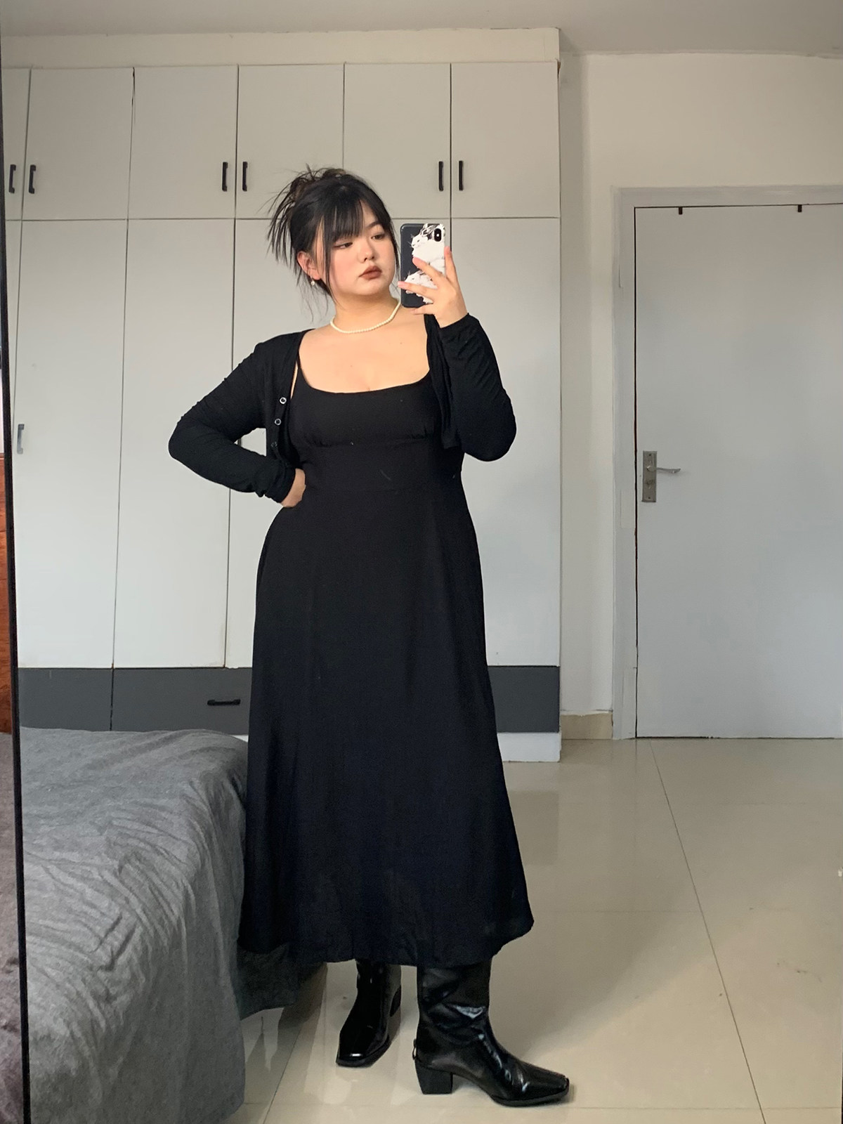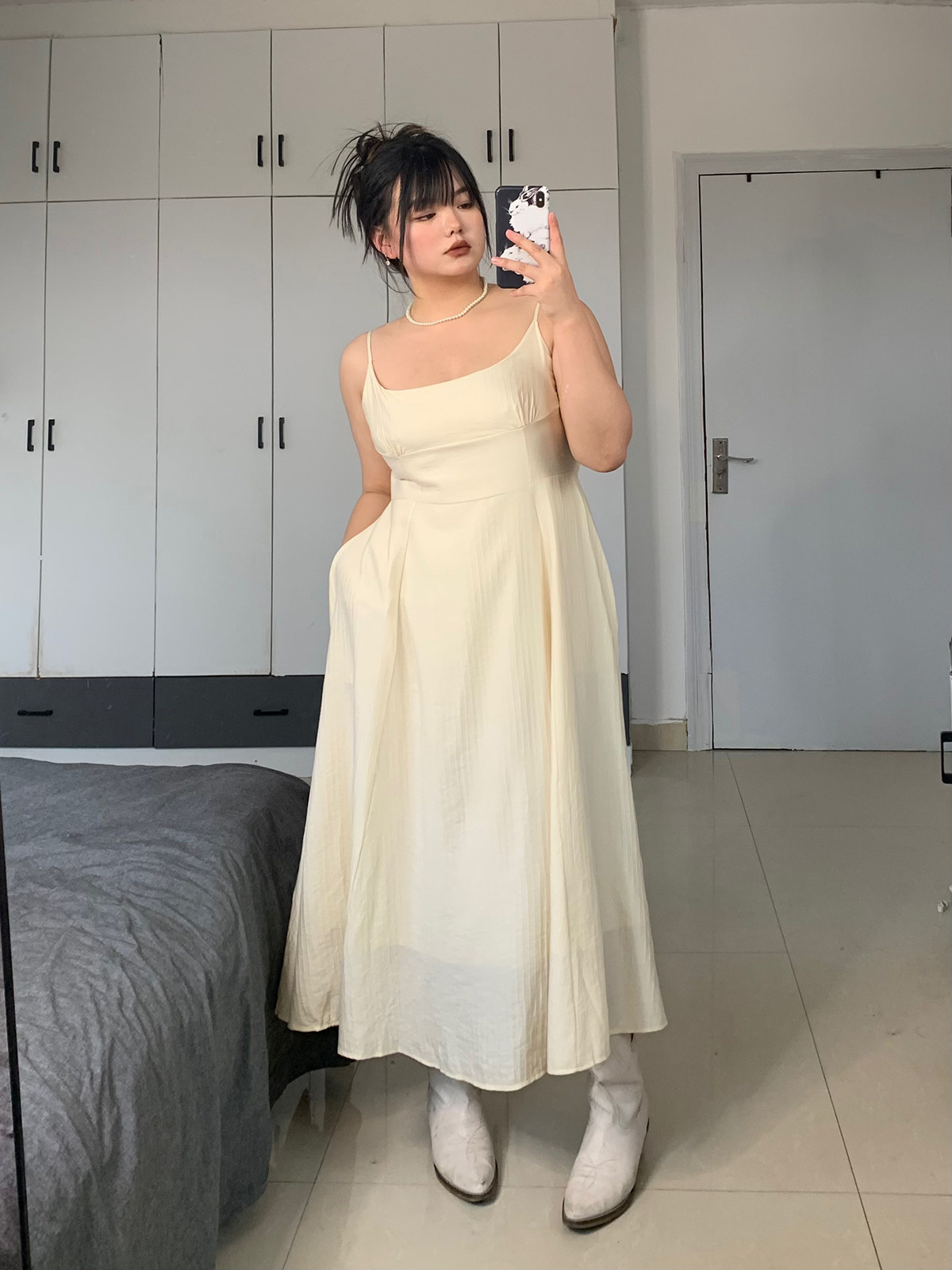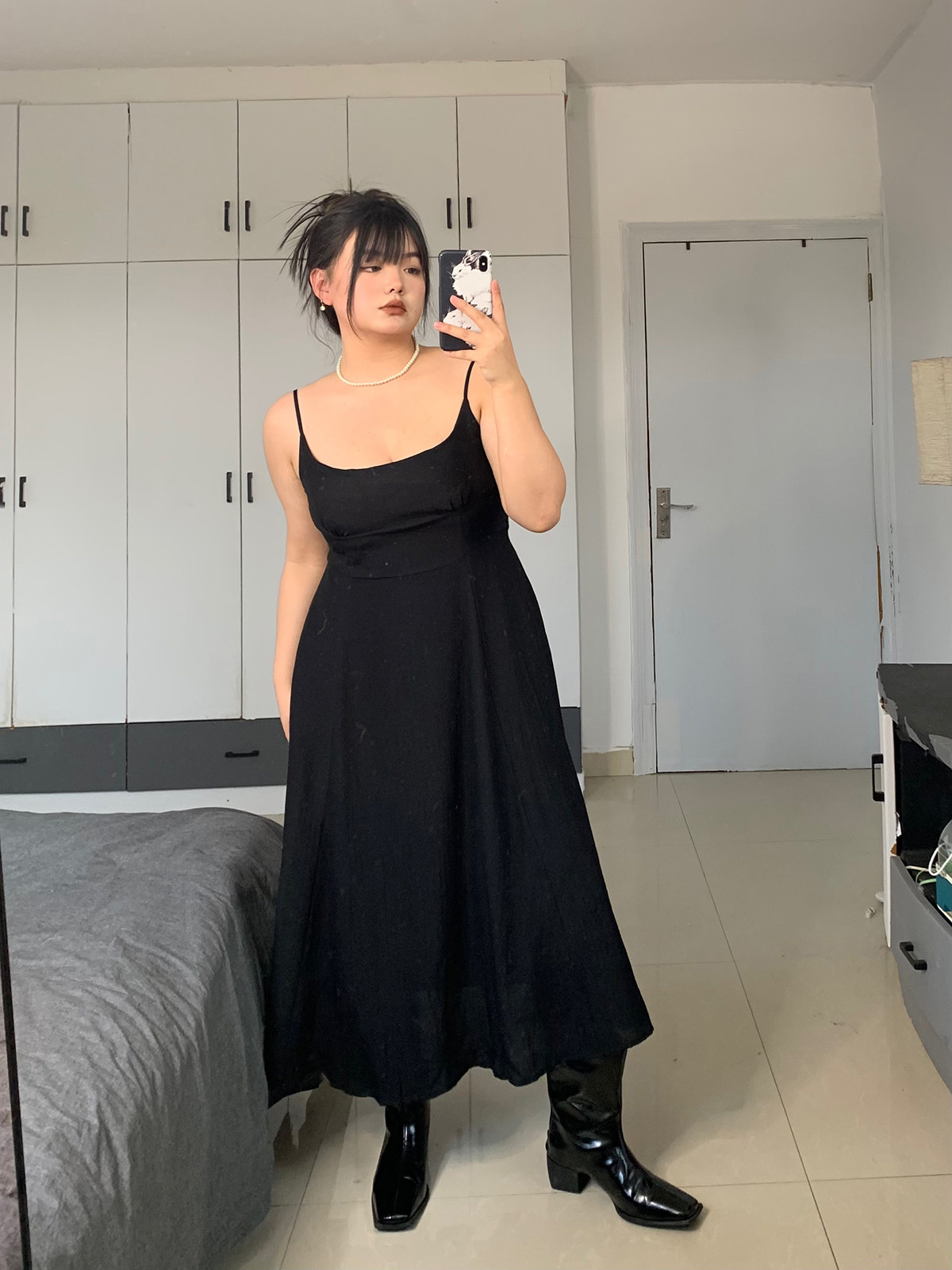 FishCake大码欧美辣妹街头黑色吊带连衣裙女夏季纯色显瘦a字裙胖m